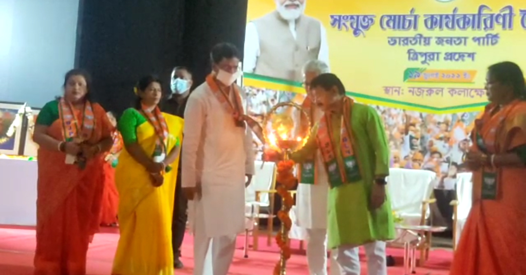 মঙ্গলবার রাজধানীর নজরুল কলাক্ষেত্রে ভারতীয় জনতা পার্টির সাতটি মোর্চার সংযুক্ত কার্যকারিণী বৈঠক অনুষ্ঠিত হয়। এ দিনের বৈঠকে উপস্থিত ছিলেন সর্বভারতীয় সাধারণ সম্পাদক ভি সতীশ, রাজ্য প্রভারী ফণীন্দ্র নাথ শর্মা, রাজ্যের মুখ্যমন্ত্রী ডাক্তার মানিক সাহা, উপ মুখ্যমন্ত্রী জিষ্ণু দেববর্মা। এদিন সংবাদ মাধ্যমের মুখোমুখি হয়ে রাজ্য ওবিসি মোর্চার এক নেতৃত্ব বলেন বৈঠকে মূলত বিগতদিনে যা যা কর্মসূচি সংঘটিত করা হয়েছে তার মূল্যায়ন করা এবং আগামী দিনে সংগঠনে কি কি কর্মসূচি হাতে নেওয়া হবে ও আগামী ২০২৩ বিধানসভা নির্বাচনকে কেন্দ্র করে দলীয় রনকৌশল স্থির করা নিয়ে আলোচনা হবে বলে জানান। এদিনের বৈঠকে দলীয় কার্যকর্তাদের উপস্থিতি ছিল লক্ষণীয়।