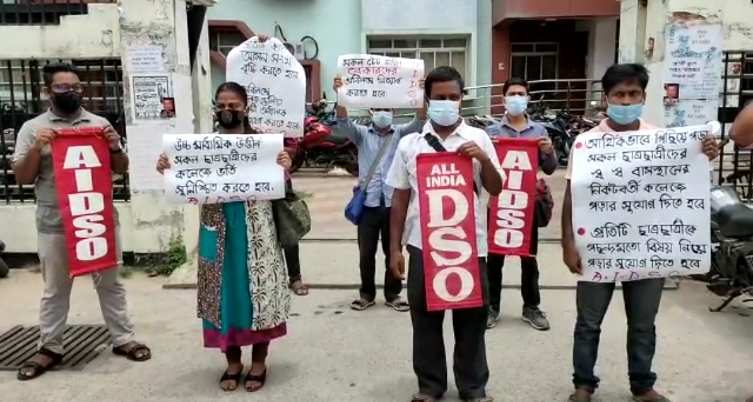 শুক্রবার উচ্চ শিক্ষার জন্য কলেজে ভর্তি সংক্রান্ত সহ শিক্ষা ক্ষেত্রে বিভিন্ন সমস্যা নিয়ে উচ্চশিক্ষা অধিকর্তার কাছে স্মারকলিপি দিল এ আই ডি এস ও। তাদের অভিযোগ বিগত কয়েক বছর ধরে রাজ্যের কলেজগুলিতে ভর্তির ক্ষেত্রে ছাত্র-ছাত্রীদের বিভিন্ন সমস্যার সম্মুখীন হতে হচ্ছে। তারা নিজেদের পছন্দমত বিষয় নিয়ে পড়ার সুযোগ পাচ্ছেন না। এদিন পেশ করা দাবিগুলোর মধ্যে উল্লেখযোগ্য হল উচ্চ মাধ্যমিক পাস করা প্রতিটি ছাত্র-ছাত্রীর কলেজে ভর্তি সুনিশ্চিত করা ,আর্থিকভাবে পিছিয়ে পড়া সকল ছাত্র-ছাত্রীদের স্ব-স্ব বাসস্থানের নিকটবর্তী কলেজে পছন্দমত বিষয় নিয়ে পড়ার সুযোগ দেওয়া ,প্রতিটি কলেজে সমস্ত বিষয়ে অনার্স কোর্স চালু আসন সংখ্যা বৃদ্ধি ,অবিলম্বে কলেজগুলোতে নিয়মিত অধ্যাপক নিয়োগ করা । এদিন সংবাদমাধ্যমের সামনে সংগঠনের রাজ্য সম্পাদক অভিযোগ করেন স্কুলগুলিতে নির্দিষ্ট কোন সিলেবাস নেই ।প্রতিটি স্কুলে শিক্ষকের অভাব। শিক্ষকের জন্য ধরনা দিচ্ছে ছাত্রছাত্রীরা বলে।