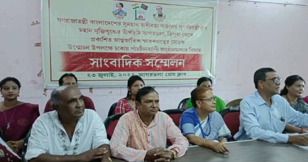 গণপ্রজাতন্ত্রী বাংলাদেশের সুমহান স্বাধীনতা অর্জনের সুবৰ্ণ জয়ন্তী বর্ষ উদযাপন উপলক্ষে মহান মুক্তিযুদ্ধের তীর্থভূমি আগরতলা , ত্রিপুরা থেকে আবারও বৃহৎ পরিসরে প্রকাশিত হয়েছে একটি আন্তর্জাতিক স্মারকগ্রন্থ। এই স্মারক গ্রন্থের মোড়ক উন্মোচন অনুষ্ঠান উপলক্ষে ঢাকায় পাঁচদিন ব্যাপী বর্ণাঢ্য কর্মসূচী গ্রহণ করা হয়েছে ।শনিবার আগরতলার প্রেস ক্লাবে সুমহান কমিটির উদ্যোগে সাংবাদিক সম্মেলন এর আয়োজন করা হয়। সাংবাদিক সম্মেলন উপস্থিত ছিলেনউপদেষ্টামণ্ডলী অধ্যাপক মিহির দেব ড . ব্রজগোপাল রায়, সুবিমল রায়, বিকচ চৌধুরী, শ্যামল চৌধুরী, স্বপন কুমার ভট্টাচার্য সহ অন্যানরা। সাংবাদিক সম্মেলনে আন্তর্জাতিক স্মারকগ্রন্থের মোরকউন্মোচন করবেন বাংলাদেশের মন্ত্রী খুকুমণি পাশাপাশি আরো বিশিষ্টজনেরা উপস্থিত থাকবেন জানান সুমহান কমিটির নেতৃত্বরা।