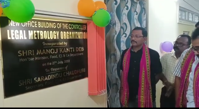 বুধবার কন্ট্রোলার অফ লিগ্যাল মেট্রোলজির নতুন অফিস ভবনের আনুষ্ঠানিক উদ্বোধন হয়। নব নির্মিত ভবনটির আনিষ্ঠানিক উদ্বোধন করেন রাজ্যের মন্ত্রী মনোজ কান্তি দেব দেব, প্রধান অতিথি হিসেবে অনুষ্ঠানে উপস্থিত ছিলেন সরদিন্দু চৌধুরী, সচিব, এফসিএস লিগ্যালমেট্রোলজি কন্ট্রোলার তপন কুমার দাস সহ অন্যান্যরা। এদিন মন্ত্রী মনোজ কান্তি দেব বক্তব্য রাখতে গিয়ে বলেন, কন্ট্রোলার অফ লিগ্যাল মেট্রোলজি দপ্তরের অফিস এবং অফিস কক্ষের অভাবে বিগত দিনে কাজ করার ক্ষেত্রে যে অসুবিধার সম্মুখীন হতে হতো তা এই নবনির্মিত ভবন উদ্বোধনের পর সেরে যাবে বলে আশা ব্যক্ত করেন এবং প্রতিটি জেলায় এতদিন যে কর্মী স্বল্পতার অভাবে পৌঁছাতে পারিনি তা আগামী দিনে পূরণ হবে বলে জানিয়েছেন। তার পাশাপাশি রাজ্যের প্রত্যেকটি জেলা যেন এই কন্ট্রোলার অফ লিগ্যাল মেট্রোলজি দপ্তরের সহযোগিতায় উপকৃত হতে পারেন সেদিকে লক্ষ্য রেখে প্রত্যেকটি জেলায় কন্ট্রোলার অফ লিগ্যাল মেট্রোলজি দপ্তর খোলার কথা জানান।