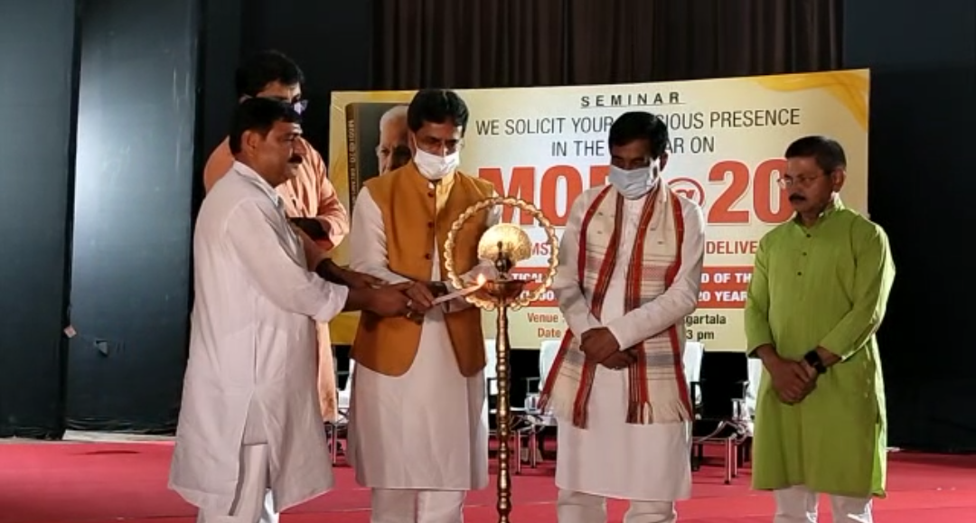 মাননীয় প্রধানমন্ত্রী মোদীজির মুখ্যমন্ত্রী ও প্রধানমন্ত্রীত্বের ২০ বৎসর পূর্তি উপলক্ষে শুক্রবার রাজধানীর নজরুল কলাক্ষেত্রের হলঘড়ে রাজ্য নেত্রীত্ব ও বিশিষ্ট নেতৃবর্গ দ্বারা “MODI@20” নামক এক বিশেষ অনুষ্ঠানের আয়োজন করা হয়। এদিনের অনুষ্ঠানে উপস্থিত ছিলেন রাজ্যের মুখ্যমন্ত্রী ডাক্তার মানিক সাহা, আগরতলা পুর নিগমের মেয়র দীপক মজুমদার, ডেপুটি মেয়র মনিকা দাস দত্ত, রাজ্যের অগ্নি নির্বাপক দপ্তরের মন্ত্রী রামপ্রসাদ পাল, চা নিগমের চেয়ারম্যান সন্তোষ সাহা, জনজাতি কল্যাণ মন্ত্রী রামপদ জমাতিয়া সহ অন্যান্য নেতৃত্বরা। এদিনের অনুষ্ঠানে মুখ্যমন্ত্রী বক্তব্য রাখতে গিয়ে নরেন্দ্র মোদীজি যে দীশাই চলছেন সেই দিশাই চললে ভারতবর্ষ একদিন সারা বিশ্বে শ্রেষ্ঠত্বের আসন দখল করবে বলে অভিমত ব্যক্ত করেন এবং নরেন্দ্র মোদিকে শুধু রাজনৈতিক নেতৃত্বরাই পছন্দ করেন এমন না অরাজনৈতিক ব্যক্তিরাও পছন্দ করেন, তাছাড়া দেশের রাষ্ট্রপতি হিসেবে যখন প্রধানমন্ত্রী নরেন্দ্র মোদি জনজাতি মহিলা দ্রৌপদী মুর্মুর নাম উত্থাপন করেন তখন শুধু দলীয় নেতৃত্বরাই নই অন্যান্য দলের নেতাকর্মীরাও সমর্থন জানিয়েছেন, বলা চলে প্রধানমন্ত্রী নরেন্দ্র মোদি ভারতবর্ষের অন্তিম ব্যক্তির বিকাশ ঘটানোর যে মন্তব্য সেটা জনজাতি অংশের একজন মহিলাকে রাষ্ট্রপতি পদে মনোনীত করার মধ্য দিয়ে প্রতিফলিত হয়েছে তাছাড়া নরেন্দ্র মোদি মানে রাস্তাঘাটের উন্নয়ন কেননা দেখা যাচ্ছে কেন্দ্রীয় সড়ক পরিবহন মন্ত্রী নীতিন গড়করীর নেতৃত্বে ও প্রধানমন্ত্রী নরেন্দ্র মোদীর মার্গদর্শনে ভারতবর্ষের বিভিন্ন জায়গায় যে ন্যাশনাল হাইওয়ে গুলি হয়েছে এবং ভারতবর্ষের প্রতিটি রাজ্যের সাথে যোগাযোগ স্থাপনের যে রেখা তৈরি হয়েছে তা অত্যন্ত প্রশংসনীয় বিষয় বলে অভিমত ব্যক্ত করলেন। এদিনের অনুষ্ঠানে দলীয় কার্যকর্তাদের এবং মন্ডল ও বুথ স্তরের নেতৃত্ব কার্যকর্তাদের উপস্থিতি ছিল লক্ষণীয়।