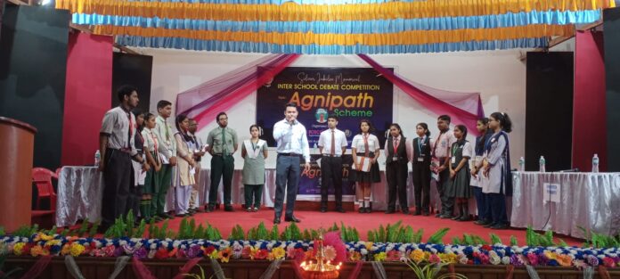 রাজধানী আগরতলার অন্যতম বনেদি বিদ্যালয় ডন বসকো স্কুলের ২৫ তম বার্ষিকী উপলক্ষে অগ্নিপথ প্রকল্পের উপর ডিবেট প্রতিযোগিতার আয়োজন করা হয় ডন বসকো বিদ্যালয়ে। এদিনের প্রতিযোগিতায় মোট আটটি বিদ্যালয়ের ছাত্রছাত্রীরা অংশগ্রহণ করে। এদিন সংবাদ মাধ্যমের মুখোমুখি হয়ে ডন বসকো বিদ্যালয় প্রিন্সিপাল জানান অগ্নিপথ প্রকল্প যুবসমাজের জন্য অত্যন্ত জরুরী তাই এই প্রকল্পকে বর্তমান যুব সমাজের মধ্যে ছড়িয়ে দেওয়া এবং এই প্রকল্প নিয়ে সচেতন করার উদ্দেশ্যে বিদ্যালয়ের ২৫ তম বার্ষিকী উপলক্ষে এই ডিবেট প্রতিযোগিতার আয়োজন বলে। এ দিনের প্রতিযোগিতাকে কেন্দ্র করে প্রতিযোগিতায় অংশ নেওয়া ছাত্র-ছাত্রীদের মধ্যে উৎসাহ উদ্দীপনা ছিল লক্ষণীয়।