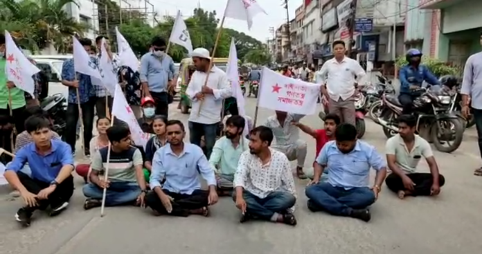 বাম ছাত্র সংগঠনের নেতাকর্মীরা। রাজ্যের বিদ্যালয়ে গুলিতে ব্যাপক শিক্ষক সংকট। অভিযোগ শিক্ষক স্বল্পতার কারণে পঠনপাঠনে ব্যাঘাত ঘটছে শিক্ষা প্রতিষ্ঠান গুলিতে এই অবস্থায় বাম ছাত্র সংগঠন দ্বয় এস এফ আই_ টি এস ইউ আন্দোলন চালিয়ে যাচ্ছে ।অভিযোগ এতেও টনক নড়ছে না শিক্ষা দপ্তরের। এই অবস্থায় সোমবার জাতীয় শিক্ষক দিবসের দিন বিদ্যালয় গুলিতে পর্যাপ্ত শিক্ষকের দাবিতে আন্দোলনে নামলো এস এফ আই টি এস ইউ। এ দিন মেলারমাঠ থেকে মিছিল করে বাম ছাত্র সংগঠনের নেতাকর্মীরা অফিস লেন শিক্ষা ভবনের সামনে আসেন।সেখানে তারা বিক্ষোভ সংগঠিত করেন। এরপর অফিস লেন শিক্ষা ভবনের সামনে পথ অবরোধ করেন ।তারা দাবি জানাতে থাকেন পর্যাপ্ত শিক্ষক নিয়োগের । ছুটি আসেন পুলিশ ।তাদেরকে গ্রেফতার করে। অভিযোগ পুলিশ তাদের টেনে হিছরে গাড়িতে তুলে । অভিযোগ পুলিশি নির্যাতনে আহত হয়েছেন এস এফ আই এর রাজ্য সভাপতি সুলেমান আলী। তাকে সঙ্গে সঙ্গে আইজি এম হাসপাতালে নিয়ে যাওয়া হয়।