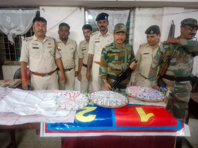 জুয়া বিরোধী অভিযানে সাফল্য পেলো রাজধানীর জিবি আউটপোস্টের পুলিশ। আউটপোস্টের ওসি প্রীতম চাকমার নেতৃত্বে পুলিশ গতকাল রাতে স্থানীয় মেমোরিয়াল ক্লাব প্রাঙ্গণে অভিযান চালায়। দীপাবলি উপলক্ষ্যে এখানে মেলার আয়োজন করা হয়েছিল। আর এই মেলাতেই বসেছিল জুয়ার আসর। খবর পেয়েই ওসি প্রীতম চাকমার নেতৃত্বে পুলিশ জুয়া বিরোধী অভিযানে নামে এবং সাফল্য পায়া। গ্রেপ্তার করা দুই জুয়াড়ি। এছাড়াও উদ্ধার হয় জুয়ার তিনটি বোর্ড। পুলিশী অভিযানের সময় দৌড়ে পালিয়ে যায় আরো তিন জুয়াকারবারি এবং প্রচুর জুয়াড়িয়া। এই ঘটনায় পুলিশ ত্রিপুরা গ্যাম্বলিং অ্যাটে একটি মামলা রুজু করেছে। জানা গেছে, শীঘ্রই বেআইনিজান্তিমুজা এবং তিন ছায়ার বিরুদ্ধে অভিযানে নামারে পুলিশ। এসি প্রীতম চাকমা এলাকার দায়িত্বে আসার পর থেকেই তিনি এলাকার অপরাধ প্রবণতা অনেকটাই কমেছে। প্রতিনিয়ত চলছে জুয়া বিরোধী অভিযান, মদ বিরোধী অভিযান। বিভিন্ন এলাকায় নেশা বিরোধী অভিযান শুরু করেছে পুলিশ। ওসি প্রীতম চাকমা চাইছেন গোটা এলাকা নেশামুক্ত হোক। তাই তিনি বিভিন্ন এলাকায় অপরাধ ও জুয়াগাষ্ঠিীর বিরুদ্ধে অভিযান। জারি রেখেছেন। দুর্গোৎসবের সময়েও গোটা এলাকা ছিল শান্তিপূর্ণ। দীপাবলিতেও ল আউটপোস্ট এলাকায় কোনো অশান্তি নেই। এসি প্রীতম চাকমার নেতৃত্বে এলাকায় সুশাসন কায়েম হয়েছে। তিনি প্রতিনিয়ত রাত্রিবেলা বিভিন্ন এলাকায় টহল দিচ্ছেন এবং এলাকায় শাস্তি সম্প্রীতি প্রতিষ্ঠার ব্যাপকভাবে কাজ করছেন। এলাকাবাসী তার কাজকর্মে ভীষণ খুশি বলে জানা গেছে। জানা গেছে মেমোরিয়াল ক্লাব এলাকায় জনৈক বাবুল সরকার নামের এক ব্যক্তি এখানে জুয়ার আসর বসিয়েছিল। গতকাল পুলিশি অভিযানের সময় তাকে খোঁজ করে পুলিশ। কিন্তু, সে পালিয়ে যায়। মেমোরিয়াল ক্লাব চত্তরে মেলাকে কেন্দ্র করে জুয়ার আসর চালানোর উদ্যোগ নিয়েছিল বাবুল নেতা। তার বিরুদ্ধে পুলিশ কড়া ব্যবস্থা নিতে পারে বলে খবর। গতকালের অভিযানে জুয়ার তিনটি কোর্ড এবং বেশ কিছু টাকা পয়সা উদ্ধার করেছে পুলিশ।