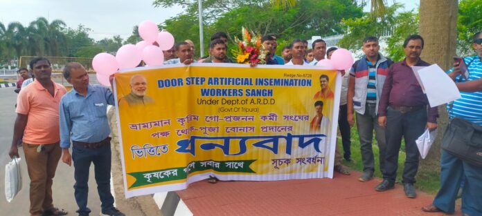 ১। ভারতবর্ষের অন্যান্য রাজ্যের ন্যায় ত্রিপুরা রাজ্যে কর্মরত প্রত্যেক ভ্রাম্যমান কৃত্তিম গো কর্মীদের মাসিক সাম্মানিক ভাতা প্রদান করতে হবে।