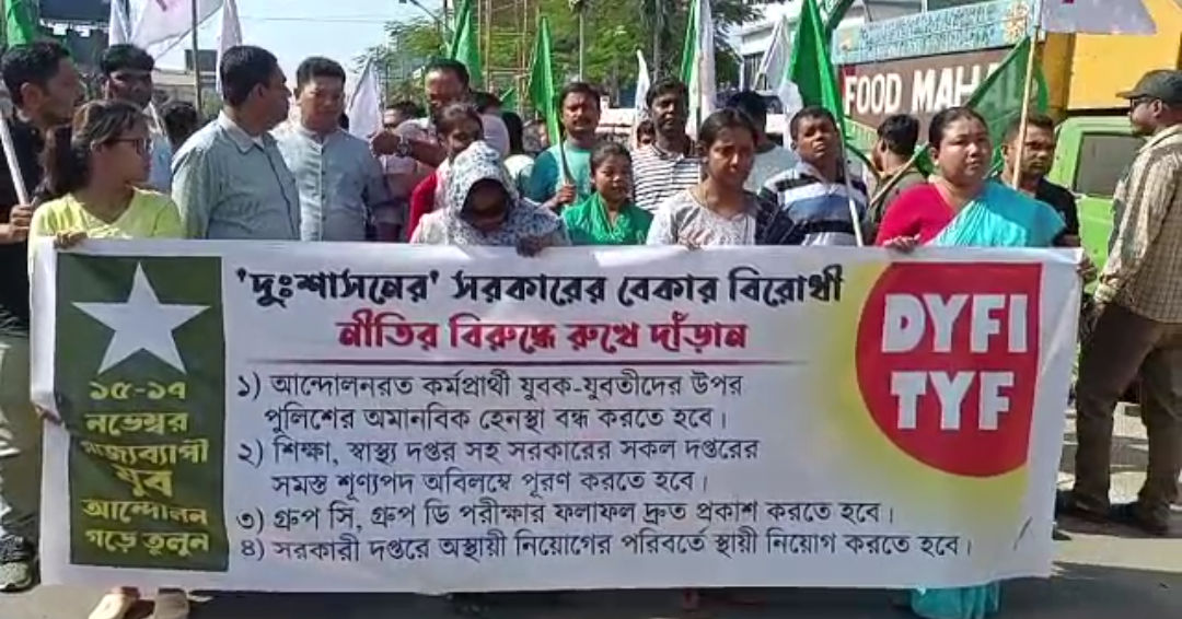 DYFI এবং TYF JRBT ফলাফল প্রকাশের দাবিতে, বিভিন্ন বিভাগে সমস্ত শূন্য পদ পূরণের দাবিতে একটি প্রতিবাদ সমাবেশ করেছে। র্যালি থেকে চাকুরী প্রত্যাশীদের উপর পুলিশের লাঠিচার্জের প্রতিবাদে যখনই বেকার চাকুরী প্রত্যাশীরা তাদের বিক্ষোভ দমন করতে ডেপুটেশন বা মন্ত্রীর বাড়ি ঘেরাও করে। শিক্ষা ও স্বাস্থ্য বিভাগে সকল শূন্য পদ পূরণ এবং আউটসোর্সিং নিয়োগ আন্দোলন প্রত্যাহার করার দাবি উত্থাপিত হয়েছে। শিক্ষিত চাকরিপ্রার্থী তরুণ-তরুণীদের সুবিধার জন্য ৪ দফা দাবিতে এ দাবি তোলা হয়।