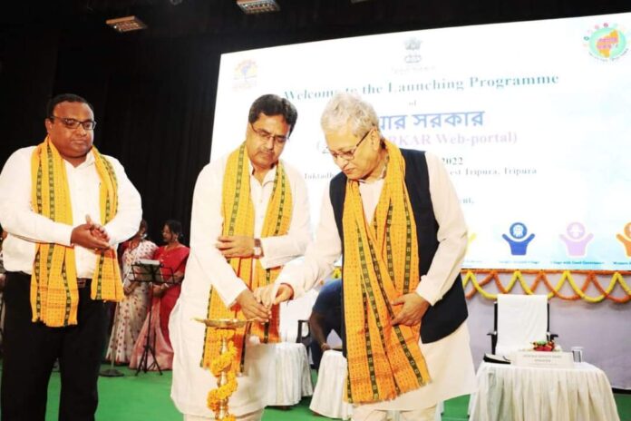 বৃহস্পতিবার রাজধানীর মুক্তধারা অডিটোরিয়াম হলে রাজ্যের মুখ্যমন্ত্রী হাত ধরে আনুষ্ঠানিক উদ্বোধন হলো আমার সরকারের ওয়েব পোর্টালের। এদিনের অনুষ্ঠানে মুখ্যমন্ত্রী ছাড়াও উপস্থিত ছিলেন উপমুখ্যমন্ত্রী জিষ্ণু দেববর্মন, এবং সংগঠনের কর্মকর্তারা। এদিনের অনুষ্ঠানে মুখ্যমন্ত্রী বক্তব্য রাখতে গিয়ে পঞ্চায়েত সদস্য এবং দলীয় কর্মীদের শৃঙ্খলাবদ্ধ হতে বলেন। তাছাড়া তিনি আরো বলেন “আমি আমার রাজ্যে শান্তি চাই। গুন্ডামি দিয়ে উন্নয়ন করা যায় না। তাই আমি আপনার মধ্যেও সেই প্রশান্তি চাই”,। পাশাপাশি এই দিন “নেশা মুক্তা ত্রিপুরা একটি চ্যালেঞ্জ। রাষ্ট্রের লোকজন সারাক্ষণ নেশায় লিপ্ত থাকলে সমাজের উন্নতি হবে কীভাবে? গতকাল এয়ারপোর্ট থেকে আসছিলাম। হঠাৎ আমি একজন যুবককে দেখতে পেলাম যে নেশাগ্রস্ত হওয়ায় ঠিকমতো চলাফেরা করতে পারছিল না। এই অবস্থা হলে রাজ্যের উন্নতি হবে কী করে?”, প্রশ্ন করলেন মুখ্যমন্ত্রী মানিক সাহা। এছাড়া এদিন রাজ্যের উপমুখ্যমন্ত্রী জিষ্ণু দেববর্মন বক্তব্য রাখতে গিয়ে বলেন বিজেপি সরকার রাজনৈতিক রঙের ভিত্তিতে লোকেদের বৈষম্য করে না। “যদি কোনও স্কিম থাকে তবে তা অবশ্যই বঞ্চনা ছাড়াই সবাইকে দিতে হবে। সরকার কোনো দলের নয়। সরকার সবার জন্য”, বলেন জিষ্ণু দেববর্মন। “এই মুহূর্তে মোদির যুগ এবং মোদির পঞ্চায়েত ব্যবস্থা আগের মতো হওয়া উচিত নয়। পঞ্চায়েত সভার অর্থ সামোসা এবং চা বাঁচানো নয়, তবে আলোচনা হওয়া উচিত আসল সমস্যাগুলি নিয়ে এবং পঞ্চায়েত সদস্যদের জনসাধারণের সমস্যাগুলি সমাধান করতে হবে”, দেববর্মন বলেন। জিষ্ণু দেববর্মন আরও পঞ্চায়েত সদস্যদের ওয়েবসাইটটি ব্যবহার করতে এবং সেখানকার বিষয়গুলিকে প্রতিরোধ করতে বলেন।