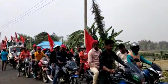 আসন্ন বিধানসভা নির্বাচনের সরব প্রচারের শেষ লগ্নে কল্যাণপুর-প্রমোদনগর বিধানসভা কেন্দ্রে শাসক দলের পাশাপাশি বিরোধী দলের প্রচারেও প্রচন্ড তেজিভাব পরিলক্ষিত হচ্ছে। আজ অর্থাৎ 12 ই ফেব্রুয়ারি দুপুর নাগাদ আসন্ন বিধানসভা নির্বাচনে বামফ্রন্ট মনোনীত কংগ্রেস সমর্থিত সি.পি.আই(এম) প্রার্থী মণীন্দ্র চন্দ্র দাসকে বিপুল ভোটে জয়ী করার আহ্বান জানিয়ে এক বাইক মিছিল গোটা বিধানসভা এলাকা প্রদক্ষিণ করে। এই বাইক মিছিল থেকে আওয়াজ উঠে গণতন্ত্র পুনরুদ্ধারের স্বার্থে আসন্ন বিধানসভা নির্বাচনে সংশ্লিষ্ট কেন্দ্রের সি.পি.আই (এম) প্রার্থী মণীন্দ্র চন্দ্র দাসকে বিপুল ভোটে জয়ী করতে হবে। এক প্রকার সারা তৈরি করেই এই বাইক মিছিলটি গোটা বিধানসভা এলাকা পরিক্রমা করে। এই উদ্দীপনাময় কর্মসূচিতে অংশগ্রহণ করে নিজের প্রতিক্রিয়া ব্যক্ত করতে গিয়ে প্রার্থী মণীন্দ্র চন্দ্র দাস দাবি করেন,,,,, গোটা এলাকার মধ্যে সাধারণ মানুষরা গণতন্ত্রের স্বার্থে সঙ্ঘবদ্ধ হচ্ছেন, পাশাপাশি তিনি দৃঢ় আশাবাদ ব্যক্ত করতে গিয়ে বলেন প্রচারে বেরিয়ে যেভাবে মানুষের সাড়া পাচ্ছেন তাতে নিশ্চিত এই কেন্দ্র পুনরুদ্ধার করা যাবে।