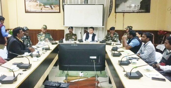 শনিবার সন্ধ্যে পাঁচটা নাগাদ খোয়াই জেলাশাসক কনফারেন্স হলে জেলাশাসক দিলীপ কুমার চাকমা এক সাংবাদিক সম্মেলন আয়োজন করেন। এই সাংবাদিক সম্মেলনে উপস্থিত ছিলেন জেলাশাসক দিলীপ কুমার চাকমা, জেলা পুলিশ আধিকারী রতি রঞ্জন দেবনাথ, ২৪ রামচন্দ্র ঘাট বিধানসভা কেন্দ্রের রিটার্নিং অফিসার এনএস চাকমা এবং বিধানসভা নির্বাচনে নিরাপত্তার দায়িত্বে থাকা কেন্দ্রীয় সামরিক বাহিনীর আধিকারিগণ সহ অন্যান্যরা।