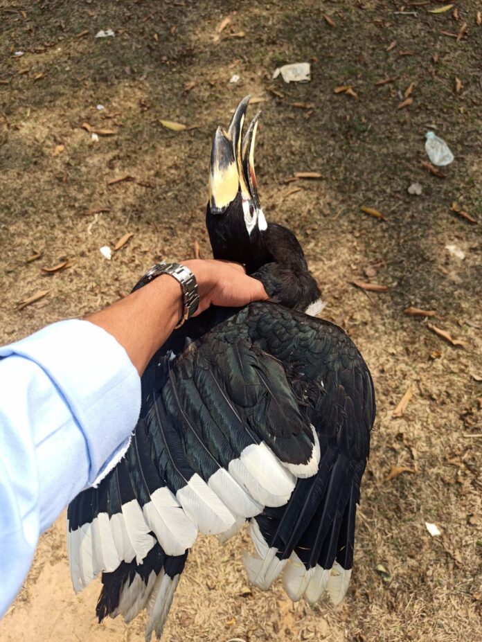 সংবাদে প্রকাশ, খাসিয়ামঙ্গল স্থিত তেলিয়ামুড়া সরকারি মহাবিদ্যালয়ের বিল্ডিং -এর জানালাতে লাগানো জালে একটি বিলুপ্তপ্রায় প্রজাতির ধনেশ পাখি আটকে থাকতে দেখে মহাবিদ্যালয়ের ছাত্র-ছাত্রীরা। পাখিটিকে জানালার জালে আটকে থাকতে দেখে ছাত্র-ছাত্রীরা সঙ্গে সঙ্গে খবর দেয় মহাবিদ্যালয় কর্তৃপক্ষকে এবং পরবর্তীতে তেলিয়ামুড়া সরকারি মহাবিদ্যালয় কর্তৃপক্ষ সহ মহাবিদ্যালয়ের ছাত্র-ছাত্রীরা সেই ধনেশ পাখিটিকে উদ্ধার করে। পরবর্তীতে বনদপ্তরের বণকর্মীদের সঙ্গে যোগাযোগের মাধ্যমে ধনেশ পাখিটিকে প্রকৃতিতে উন্মুক্ত করে দেওয়া হয় বলে জানা যায় মহাবিদ্যালয় সূত্রে। উল্লেখ্য থাকে, বর্তমান সময়ে ধনেশ পাখি প্রায় বিলুপ্তির পথে। মহাবিদ্যালয়ের ছাত্র-ছাত্রীরা এই ধনেশ পাখিটিকে উদ্ধার করে প্রকৃতিতে উন্মুক্ত করে দিয়ে এক অনন্য নজির সৃষ্টি করেছে বলে অভিমত প্রকৃতি প্রেমিক মহলের।