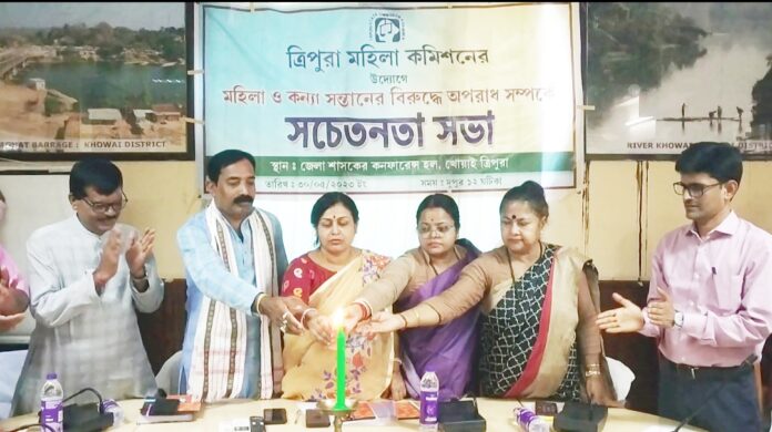 প্রতিনিধি খোয়াই…… মঙ্গলবার দুপুর ১২ টা নাগাদ খোয়াই জেলা শাসকের কনফারেন্স হলে অনুষ্ঠিত হলো রাজ্য মহিলা কমিশনের উদ্যোগে মহিলা ও কন্যা সন্তানের উপর অপরাধ দমন মূলক এক সচেতনতা সভা অনুষ্ঠিত হয়। উক্ত অনুষ্ঠানের উদ্বোধক হিসেবে উপস্থিত ছিলেন ছিলেন রাজ্য মহিলা কমিশনের চেয়ারপারসন শ্রীমতি বর্ণালী গোস্বামী, এছাড়া অনুষ্ঠানে অন্যদের মধ্যে ছিলেন মহিলা কমিশনের ভাইস চেয়ারম্যান রস্মিতা বণিক, মহিলা কমিশনের সদস্য ডালিয়া সিনহা। এছাড়া খোয়াই পুর পরিষদের চেয়ারম্যান দেবাশীষ নাথ শর্মা, খোয়াই জিলা পরিষদের সভাধিপতি জয়দেব দেববর্মা, খোয়াই জিলা পরিষদের সহ-সবাধিপতি হরিশঙ্কর পাল, খোয়াই জেলার অতিরিক্ত জেলাশাসক সুভাষ চন্দ্র সাহা, দশরথ দেব মেমোরিয়াল কলেজের অধ্যক্ষ, বার এশিয়েশনের আইনজীবীরা, আইসিডিএস দপ্তরের আধিকারিগণ খোয়াই জেলার প্রত্যেকটি থানার আধিকারীকরা সহ বিভিন্ন দপ্তরের আধিকারিকরা। আইসিডিএস দপ্তরের অঙ্গনওয়ারী কর্মীরা ও দশরথ দেব মেমোরিয়াল কলেজের ছাত্রছাত্রী সহ অন্যান্যরা উপস্থিত ছিলেন। সবার শুরুতেই রাজ্য মহিলা কমিশনের চেয়ারপারসন বর্ণালী গোস্বামী প্রদীপ প্রজ্জলনের মাধ্যমে অনুষ্ঠানের সূচনা করেন। এরপর তিনি বক্তব্য রাখতে গিয়ে বলেন রাজ্যের মহিলা ও কন্যা সন্তানদের উপর যে সমস্ত অপরাধ গুলি সংঘটিত হচ্ছে সেই বিষয়গুলি নিয়ে দীর্ঘক্ষণ আলোচনা করেন উনার আলোচনাতে তিনি তুলে ধরবার চেষ্টা করেন সুধু মাত্র রাজ্য মহিলা কমিশনের পক্ষে মহিলা ও কন্যা সন্তানের উপর সংগঠিত বিভিন্ন নির্যাতন রোধ করা কিছুতেই সম্ভব না। মহিলা ও কন্যা সন্তানদের উপর নির্যাতন এর লাগাম টানার জন্য অবশ্যই সমাজের প্রত্যেকটা অংশের জনগণকে এগিয়ে আসতে হবে। বিশেষ করে তিনি বলবার চেষ্টা করেন সারা রাজ্যের প্রতিটি এলাকাতে আইসিডিএস দপ্তরে অঙ্গনওয়ারী কেন্দ্র আছে সেই অঙ্গনওয়ারী কেন্দ্রের প্রতিটি অঙ্গনওয়ারী কর্মীরা প্রত্যেক পরিবারের রান্না ঘরের খবর তাদের কাছে আছে সুতরাং অঙ্গনওয়ারী কর্মীদের রাজ্যের মহিলা ও কন্যা সন্তানদের উপর বিভিন্ন রকম নির্যাতনের খবর তাদের কাছে থাকে সুতরাং তাদেরও ভূমিকা আছে। এরপর তিনি সংবাদমাধ্যমের কর্মী তথা সাংবাদিকদের অনেক প্রশংসা করেন এই কারণে যে রাজ্যের প্রতিটা কন্যা সন্তান ও মহিলাদের উপর নির্যাতনের ঘটনা সাংবাদিকরা প্রকাশ করে থাকেন এরপরই সেই নির্যাতনের সংবাদ কমিশনের নজরে আসে সে জায়গায় দাঁড়িয়ে সাংবাদিকদের ভূমিকা রয়েছে ব্যাপক। পরিশেষে তিনি বলবার চেষ্টা করেন মহিলা সংক্রান্ত অপরাধ আজ থেকে ২৫ বছর আগে যে সমস্ত পদ্ধতি অবলম্বন করা হতো এখন সেই পদ্ধতির অনেক পরিবর্তন হয়ে বিভিন্ন গণমাধ্যম এবং সোশ্যাল মিডিয়ার মধ্যে দিয়ে হচ্ছে যা সহজে চোখে পড়ে ন