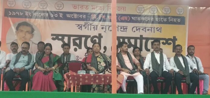 বাসুদেব ভট্টাচার্যী খোয়াই ১৩ই অক্টোবর..…… ত্রিপুরা রাজ্যে খুনের ইতিহাসের পুনরাবৃত্তি চাই না, বললেন খোয়াই জাম্বুরা দ্বাদশ শ্রেণী বিদ্যালয়ের মাঠে শহীদ নৃপেন্দ্র দেবনাথের স্মরন সভায় উপস্থিত হয়ে রাজ্য বিধানসভার মুখ্য সচেতক শ্রীমতি কল্যাণী রায় ।রাজ্যের প্রথম রাজনৈতিক খুন কান্দে শহীদ নৃপেন্দ্র দেবনাথ এর স্মরণ সভাতে ।রাজ্যের প্রথম রাজনৈতিক খুন কাণ্ডে শহীদ নিপেন্দ্র দেবনাথ এর ৪৭ তম শহীদ দিবস উপলক্ষে পালিত হল শহীদ নৃপেন্দ্র দেবনাথের স্মরণ সমাবেশ খোয়াই মন্ডলের উদ্যোগে। খোয়াই মন্ডলের উদ্যোগে এই সমাবেশটি অনুষ্ঠিত হয় খোয়াই বিধানসভার অন্তর্গত জাম্বুরা স্থিত দ্বাদশ শ্রেণী বিদ্যালয়ের মাঠে সোমবার বিকেলে।এই শহীদ সমাবেশে উপস্থিত ছিলেন বিধায়ক পিনাকী দাস চৌধুরী, রাজ্য বিধানসভার মুখ্য সচেতক শ্রীমতি কল্যানী রায়, জেলা সভাপতি বিনয় দেববর্মা, জেলার সাধারণ সম্পাদক সমীর কুমার দাস, মন্ডল সভাপতি অনুকূল দাস, খোয়াই পুর পরিষদের চেয়ারম্যান দেবাশীষ নাথ শর্মা জিলা পরিষদের সভাধিপতি শ্রীমতি অপর্ণা সিংহ রায় সহ অন্যান্যরা। এবং শহীদ নৃপেন্দ্র দেবনাথের পরিবারের লোকেরা ।এই সমাবেশে বক্তব্য রাখতে গিয়ে বিধায়ক পিনাকী দাস চৌধুরী বিগত দিনের সন্ত্রাসের কথা উল্লেখ করেন এবং বলে তৎকালীন খোয়াই এর সি পি আই এম দল তৎকালীন সময়ে নিপেন্দ্র দেবনাথ নির্দল প্রার্থী হিসেবে কাজ করছিলেন। উনার রাজনৈতিক উত্থান দেখে সি পি এম দল শেষে তাদের পথের কাঁটা ভেবে নির্দল প্রার্থী তথা জাম্বুরা গ্রাম পঞ্চায়েতের প্রধান নিপেন্দ্র দেবনাথকে ১৯৭৮ সালে ১৩ ই অক্টোবর বিকেল ৩ টা ৩০ মিনিট নাগাদ খোয়াই অরবিন্দ পার্ক এলাকায় সি পি আই এম এর ঘাতক বাহিনীর দ্বারা পিটিয়ে পেটের মধ্যে চাকু মেরে হত্যা করা হয়েছিল। তাছাড়া শহীদ নিপেন্দ্র দেবনাথ জাম্বুরার যে এলাকাতে বাড়ি সেই রাস্তা টির নামকরণ ও করা হয় শহীদ নিপেন্দ্র দেবনাথ স্মরণে। তাছাড়া এই স্মরণ সভা শুরু হওয়ার প্রাক মুহুর্তে জাম্বুরা এলাকার রঞ্জন রায় স্মৃতি ভবন এর সামনে নৃপেন্দ্র দেবনাথ এর স্মৃতিসৌধের ফলক উন্মোচন করা হয়। সোমবার বিকেলে এই স্মরণ সভায় আলোচনা করতে গিয়ে বিধায়ক পিনাকি দাস চৌধুরী এবং রাজ্য বিধানসভার মুখ্য সচেতক শ্রীমতি কল্যানী রায় ও বাম শাসিত আমলে যে সমস্ত সন্ত্রাসের ঘটনা গুলি ঘটেছিল সারা রাজ্যে সেই ঘটনাগুলির বৃত্তান্ত ওনাদের বক্তব্যের মাধ্যমে তুলে ধরেন। পাশাপাশি এই কথাগুলোও বলেন এই সমস্ত খুন কাণ্ডের পুনরাবৃত্তি চাননি রাজ্যের শাসকদল বিজেপি। সব থেকে লক্ষণীয় বিষয় হল এই সমাবেশে কর্মী সমর্থকের উপস্থিতি ছিল বেশ লক্ষণীয়। এবং অনুষ্ঠানের শেষ পর্যন্ত প্রত্যেকটা কর্মী সমর্থকরা অনুষ্ঠান প্রাঙ্গনে উপস্থিত থেকে উপ