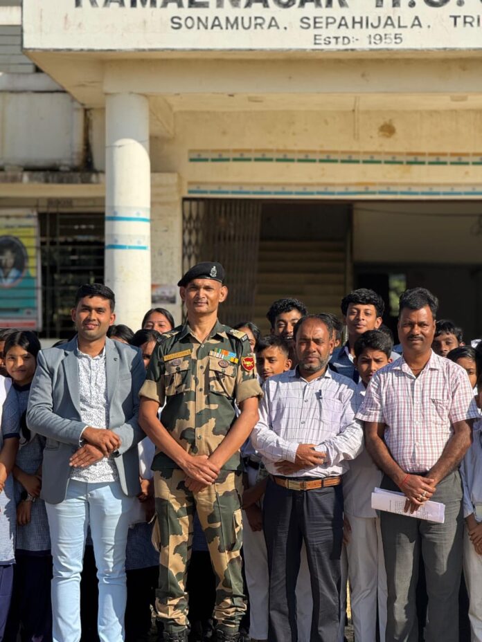 বক্সনগর বিধানসভা এলাকার কমলনগর দ্বাদশ শ্রেণি বিদ্যালয়ে সংবিধান দিবস উপলক্ষে বি এস এফ এলাকাবাসী ও স্কুলের ছাএছাএীদের মধ্যে অনুষ্ঠিত হল আলোচনা সভা