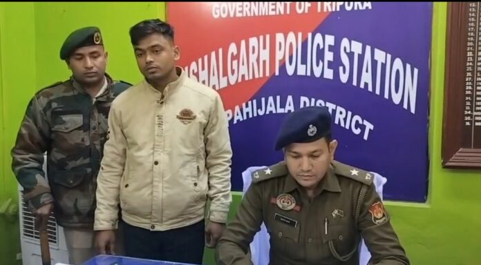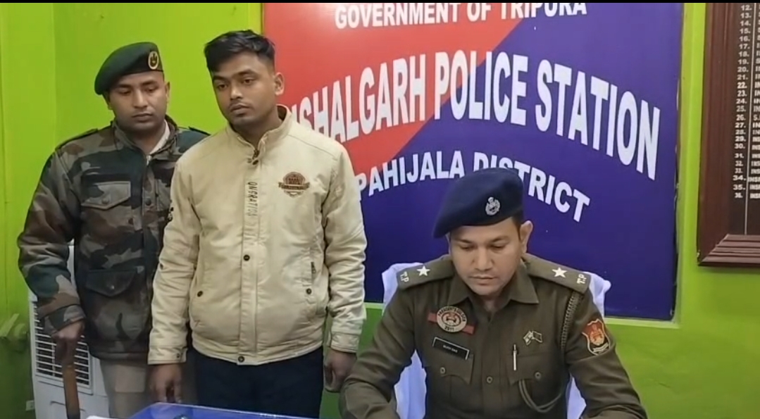 বিশালগড় প্রতিনিধি,শাহিনুর চৌধুরী। ২৮শে ডিসেম্বর। বিগত ৭-১১-২০২৫ তারিখে বিশালগড় মহকুমা অন্তগর্ত বিশালগড় নিউমার্কেট গরুবাজারস্হিত কিছু লোক বি এস এফের গাড়িতে আক্রমণ করে এবং সরকারি সম্পত্তির তথা বি এস এফের গাড়ি ভাংচুর ঘটনায় সংঘটিত করে।এই ঘটনার পরিপেক্ষিতে বিগত ০৭-১১-২৫ ইং তারিখে বিশালগড় থানার একটি মামলা রুজু করা হয়।মামলা নং ১০৪/২০২৫, এই হামলা এবং আক্রমণ ঘটনায় রবিবার আরেক অভিযুক্ত রবিউল হোসেনকে বিশালগড় থানার পুলিশ আটক করে থানায় নিয়ে আসে।