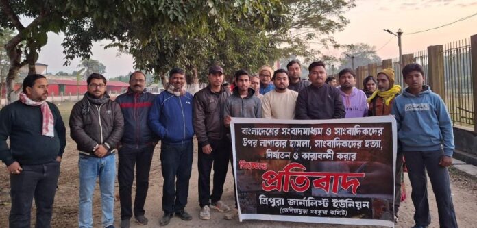 বাংলাদেশে সাংবাদিক নিপীড়নের প্রতিবাদে তেলিয়ামুড়ায় বিক্ষোভ মিছিল