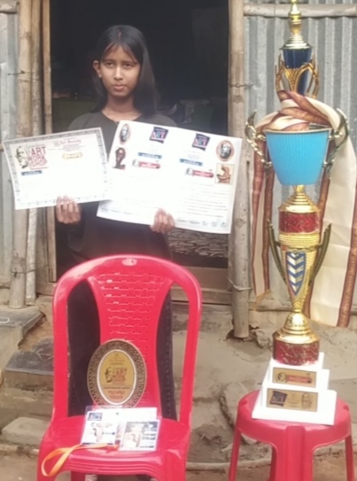 কোলকাতার শান্তিনিকেতন থেকে আন্তর্জাতিক স্তরে অঙ্কন প্রতিযোগিতায় বিশেষ পুরস্কার অর্জন করে খোয়াই এর মুখ উজ্জ্বল করল অজগরটিলার সুষমিতা বর্মন।