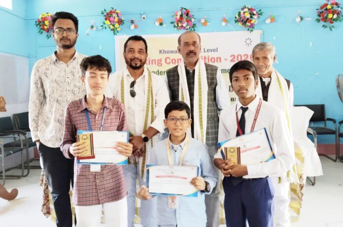 বাসুদেব ভট্টাচার্যী খোয়াই ২৮শে জানুয়ারি…..বুধবার সকাল ১১ ’টায় খোয়াই জেলা শিক্ষা দপ্তরের উদ্যোগে খোয়াই সরকারি দ্বাদশ শ্রেণী বিদ্যালয়ের বি‚আর‚সি‚ হলে অনুষ্ঠিত হয় খোয়াই জেলাভিত্তিক এক রন্ধন প্রতিযোগিতা। এই প্রতিযোগিতার উদ্ভোধক ও প্রধান অতিথি হিসেবে উপস্থিত ছিলেন বিশিষ্ট সমাজসেবক অনিমেষ নাগ।সম্মানিত অতিথি হিসেবে উপস্থিত ছিলেন বিশিষ্ট সমাজসেবক সমরেন্দ্র দত্ত‚ বিশেষ অতিথি হিসেবে উপস্থিত ছিলেন খোয়াই জেলা শিক্ষা দপ্তরের ও এস ডি মতিলাল দেব্বর্মা ও বিশিষ্ট সমাজসেবক সঞ্জীব দে। আহ্বায়ক ছিলেন খোয়াই জেলা শিক্ষা দপ্তরের আধিকারিক স্বপন সরকার। অনুষ্ঠানের পৌরহিত্য করেন উপেন্দ্রকিশোর জে‚বি‚ স্কুলের প্রধানশিক্ষক অশোক দাস। অনুষ্ঠানের শুরুতেই অতিথিদের রিশা পড়িয়ে ও ফুলের তোড়া দিয়ে বরন করে নেওয়া হয়। মঙ্গলদীপ প্রজ্জ্বলনের মধ্য দিয়ে অনুষ্ঠানের শুভসূচনা করেন অনুষ্ঠানের উদ্ভোধক ও প্রধান অতিথি সহ অন্য অতিথিরা। স্বাগত বক্তব্য রাখেন অনুষ্ঠানের আহ্বায়ক স্বপন সরকার‚ পরপর বক্তব্য রাখেন মতিলাল দেব্বর্মা‚ সঞ্জীব দে‚ সমরেন্দ্র দত্ত‚ অনিমেষ নাগরা। তারপরে অনুষ্ঠানের সভাপতি অশোক দাস বক্তব্য রাখার মধ্য দিয়ে প্রথমার্ধের সমাপ্তি করেন‚ এরপর দ্বিতীয়ার্ধে মূল পর্বের রন্ধন প্রতিযোগিতা শুরু হয়। অতিথিরা রন্ধন প্রতিযোগিতা স্থলটি ঘুরে দেখেন। এই খোয়াই জেলাভিত্তিক রন্ধন প্রতিযোগিতায় জেলার ৬ ’টি ব্লক থেকে ১৮ জন Cook-CUM-Helper অংশগ্রহণ করেন। প্রতিযোগিতায় বিচারকের ভূমিকায় ছিলেন গণকি দ্বাদশ শ্রেণি বিদ্যালয়ের অষ্টম শ্রেণির ছাত্র অর্ণব দাস‚ বিদ্যাজ্যোতি খোয়াই সরকারি দ্বাদশ শ্রেণি বালিকা বিদ্যালয়ের অষ্টম শ্রেণির ছাত্রী লিমা পাল‚ বিদ্যাজ্যোতি খোয়াই সরকারি ইংরেজি মাধ্যম দ্বাদশ শ্রেণি বিদ্যালয়ের স্নাতকোত্তর শিক্ষক প্রশান্ত দেবরায়‚ বিদ্যাজ্যোতি খোয়াই সরকারি দ্বাদশ শ্রেণি বিদ্যালয়ের পরিচালন কমিটির সদস্য সঞ্জীব দে‚ এবং খোয়াই জেলা শিক্ষা দপ্তরের ও এস ডি মতিলাল দেব্বর্মা। খোয়াই জেলাভিত্তিক রন্ধন প্রতিযোগিতায় প্রথম‚ দ্বিতীয় ও তৃতীয় স্থান অধিকার করে যথাক্রমে সর্দু কর্করি উচ্চ বিদ্যালয়ের ভোজন মাতা রবিনা দেব্বর্মা‚ নর্থ জামটিলা এস‚বি‚ প্রাথমিক স্কুলের ভোজন মাতা রবাইতি দেব্বর্মা‚ এবং আনন্দময়ী জে‚বি‚ স্কুলের ভোজন মাতা অনিতা দাস শীল। উল্লেখ্য যে‚ প্রথম‚ দ্বিতীয় ও তৃতীয় স্থানাধিকারী ভোজন মাতারা আগামী কিছুদিনের মধ্যে রাজ্য স্তরে অনুষ্ঠিত রন্ধন প্রতিযোগিতায় অংশ গ্রহণ করবেন। এইদিন অনুষ্ঠান প্রাঙ্গণে দর্শক-শ্রোতাদের ভীড় ছিলো লক্ষ্যণীয়।সবশেষে অভিনব এই প্রতিযোগিতা উপভোগ করতে উপস্থিত সকলের মধ্যে ভোজন মাতাদের রান