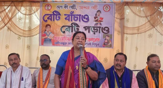 গ্রাম পঞ্চায়েতের উদ্যোগে ঐ এলাকার কচিকাঁচা কন্যা শিশুদের নিয়ে প্রদীপ প্রজ্জলনের মধ্য দিয়ে বিধায়িকা কল্যাণী সাহা রায় গ্রামের ছোট ছোট শিশু কন্যাদের হাতে বিভিন্ন ধরনের স্কুল সামগ্রী তুলে দিলেন। মাননীয় প্রধানমন্ত্রী নরেন্দ্র মোদিজীর “বেটি বাঁচাও, বেটি পড়াও” উদ্যোগকে সামনে রেখে। অনুষ্ঠানে প্রধান অতিথি হিসেবে উপস্থিত ছিলেন ত্রিপুরা বিধানসভার মুখ্য সচেতক কল্যাণী সাহা রায়। তিনি বলেন, “কন্যাশিক্ষার বিনিয়োগই ভবিষ্যৎ গড়ার সবচেয়ে বড় শক্তি।” পাশাপাশি তিনি উল্লেখ করেন যে কেন্দ্রীয় সরকার কন্যা সন্তানের প্রতি সহানুভূতিশীল এবং তাদের জন্য বিভিন্ন প্রকল্প হাতে নিয়েছে। এছাড়া এই অনুষ্ঠানে আরও উপস্থিত ছিলেন আর ডি ব্লক ের ভিডিও, তেলিয়ামুড়া পঞ্চায়েত সমিতির ভাইস চেয়ারম্যান নির্মল সূত্রধর, খোয়াই জেলা পরিষদের সদস্য সত্যেন্দ্র দাস,গ্রাম পঞ্চায়েতের প্রধান ও সদস্যবৃন্দ সহ এলাকার প্রবীণ নাগরিকরা। শিশু কন্যাদের হাতে স্কুল সামগ্রী তুলে দেওয়ার মাধ্যমে তাদের শিক্ষার প্রতি উৎসাহ বাড়ানোই ছিল এই উদ্যোগের মূল লক্ষ্য। গ্রামের মানুষজনের উপস্থিতি ও শিশুদের উচ্ছ্বাসে অনুষ্ঠানটি প্রাণবন্ত হয়ে ওঠে।