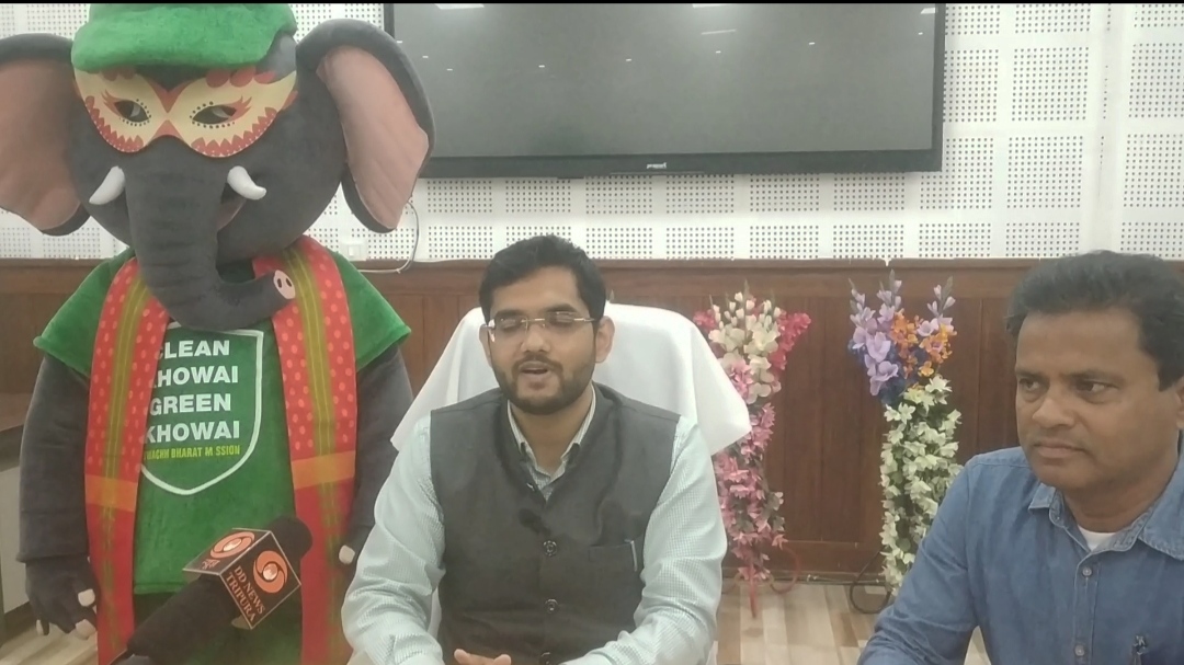 স্বচ্ছ ভারত ও স্বচ্ছতার প্রতীক হিসেবে হাতির প্রতিকৃতি নির্মল মতি কে নিয়ে খোয়াই জেলা শাসকের সাংবাদিক সম্মেলন।