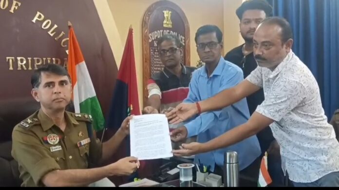 বাসুদেব ভট্টাচার্যী খোয়াই ২৩শে ফেব্রুয়ারি…..রাজ্যের দুই কর্মরত বরিষ্ঠ সাংবাদিক তথা সানিত দেব রায় ও প্রনব সরকার সহ রাজ্যের বিভিন্ন প্রান্তের সাংবাদিকদের ওপর বিভিন্ন ধরনের হুমকি এবং হুজ্জতির প্রতিবাদ জানিয়ে এবং রাজ্যের দুই বরিষ্ঠ সাংবাদিককে নিয়ে কু রুচি পূর্ন মন্তব্য এবং মানসিক নির্যাতন করার বিরুদ্ধে রাজ্যের দুই বিধায়ক রনজিৎ দেববর্মা ও রামপ্রসাদ পালের বিরুদ্ধে উপযুক্ত ব্যবস্থা ও বিধায়ক পদ থেকে বহিস্কারের জন্য সারা রাজ্যের নির্ধারিত কর্মসূচি অঙ্গ হিসাবে সোমবার দুপুরে খোয়াইয়ের রাজপথে মৌন মিছিল করে খোয়াই জেলার পুলিশ সুপার রানাদীত্য দাসের নিকট এক ডেপুটেশন প্রদান করে খোয়াই এর সমস্ত কর্মরত সাংবাদিকরা। সোমবার দুপুরে একটা নাগাদ খোয়াই সুভাষ পার্ক স্থিত শ্রী শ্রী রাধা কৃষ্ণ মন্দির প্রাঙ্গণ থেকে একটি মৌন মিছিল সংঘটিত করাহয়।এই মিছিলটি কৃষ্ণ মন্দির প্রাঙ্গণ থেকে সুরু হয়ে খোয়াই সুভাষ পার্ক,নৃপেন চক্রবর্তী এভিনিউ হয়ে স্যামা প্রসাদ স্মরনি হয়ে জেলা পুলিশ সুপারের কার্যালয়ে গিয়ে মিছিলটি শেষ হয়। এবং জেলা পুলিশ সুপারের কাছে এক স্মারক লিপি প্রদান করেন খোয়াই এর বরিষ্ঠ সাংবাদিকরা। মূলত সাংবাদিকদের উপর বিভিন্ন ধরনের হুমকি হুজ্জতির প্রতিবাদ জানিয়েই এই কর্মসূচিটি গৃহীত হয়। জেলা পুলিশ সুপারের নিকট স্বরলিপি প্রধানের পর পুলিশ সুপার সেটি সাদরে গ্রহণ করেন এবং সাংবাদিকদের আশ্বস্ত করার বিষয়টিকে তিনি গুরুত্ব সহকারে উপর মহলে পাঠিয়ে দেওয়ার ব্যবস্থা করছেন অতিসত্বর।