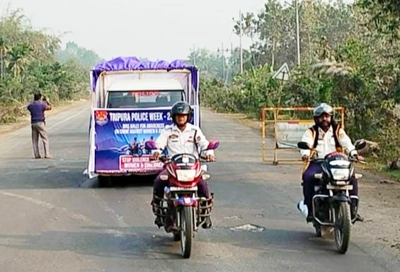 ত্রিপুরা পুলিশ সপ্তাহ ২০২৬ এই উপলক্ষে খোয়াই জেলা পুলিশের অন্তরগত এক সপ্তাহ ব্যাপী চলছে বিভিন্ন ধরনের কর্মসূচি। অবশেষে পুলিশ সপ্তাহের শেষের দিন অর্থাৎ শুক্রবার সকাল সাতটায় খোয়াই জেলা পুলিশ সুপারের কার্যালয় থেকে এক বাইক রেলির আয়োজন করা হয় সমস্ত খোয়াই শহর সহ তার আস পাশ এলাকা জুড়ে। শুক্রবার সকাল ৭ টা নাগাদ বাইক রেলিটির সূচনা করেন খোয়াই জেলার পুলিশ সুপার রানাদীত্য দাস। এছাড়া উপস্থিত ছিলেন অতিরিক্ত পুলিশ সুপার জাস্টিস জোসেফ, খোয়াই মহকুমার এস ডি পিও D. KUDDAIRASSU থেকে শুরু করে আরক্ষা প্রশাসনের আধিকারিক এবং পুলিশ ও টি এস আর জোয়ানরা। শুক্রবার সকালে গোটা খোয়াই শহর পরিক্রমা করে খোয়াই সিংঙ্গিছড়া হয়ে ২০৮ নং জাতীয় সড়ক ধরে চেরমা, সিংঙ্গিছড়া ২ নং বাজার,বারবিল এর উপরদিয়ে জাম্বুরা এলাকা হয়ে মহাদেব টিলা চৌহমুনি হয়ে খোয়াই গনকি স্থিত পুলিশ লাইনে এসে এই রেলিটি সমাপ্ত হয়।কেন এই রেলি জানতে চাইলে জেলা পুলিশ সুপার রানাদিত্য দাস বলেন বিভিন্ন সামাজিক বার্তা , এবং মহিলা ও শিশু কন্যা সহ সমাজের সার্বিক সুরক্ষার স্বার্থে এবং বাল্যবিবাহ প্রতিরোধে জনগনকে সচেতন করতে খোয়াই জেলা পুলিশের উদ্যোগে সপ্তাহ ব্যাপী চলছে বিভিন্ন ধরনের অনুষ্ঠান ।এবং শেষে জনগনকে আস্বস্ত করতে যে পুলিশ সর্বদা জনগণের পাশে আছে। পাশাপাশি সমাজের স্বার্থে কোন্ ধরনের অপ্রিতিকর ঘটনা যাতে না ঘটে সেইদিকে নজর রাখতে এবং সময় মতো পুলিশকে সাহায্য করতে।কারন সমাজের নারি, শিশুদের সুরক্ষা এবং সন্মান রক্ষা করতে পারলে সমাজ সুরক্ষিত হবে।সমাজ সুরক্ষিত হলে সেই সমাজের নারি, শিশুরা অদুর ভবিস্বতে রাজ্য ও দেশের মুখ উজ্জ্বল করবে এবং একটি সুন্দর সমাজ তৈরিতে তারা এগিয়ে আসবে।সেই বার্তা জনগনের কাছে পৌঁছে দিতেই পুলিশ সপ্তাহের শেষ দিনে এই বাইক রেলির আয়োজন করা হয় এই বার্তা জনগনের কাছে পৌঁছানোর জন্য।