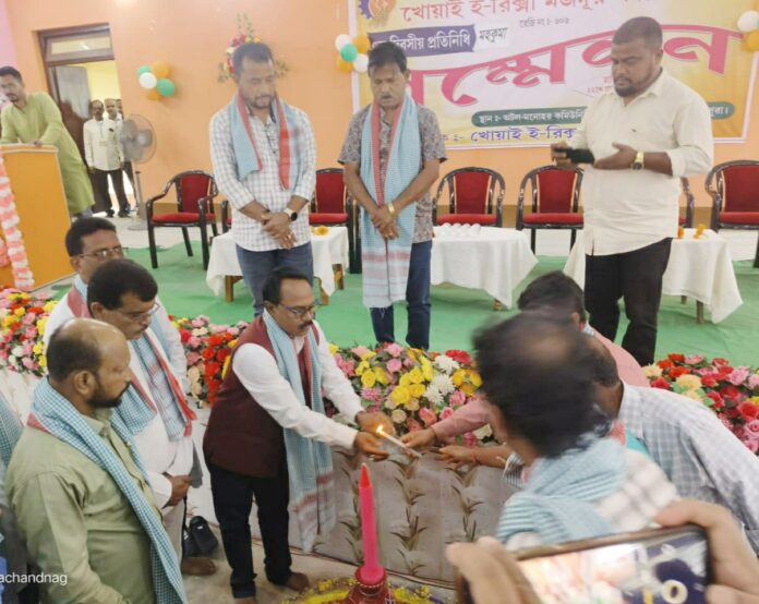 বাসুদেব ভট্টাচার্যী খোয়াই ২২শে মার্চ…….রবিবার দুপুর ১২ ’টায় খোয়াই মহাদেবটিলা স্থিত অটল মনোহর কমিউনিটি হলে অনুষ্ঠিত হয়ে গেল ভারতীয় মজদুর সংঘের অনুমোদিত খোয়াই ই-রিক্সা মজদুর সংঘের একদিবসীয় প্রতিনিধি সম্মেলন।এই সম্মেলনের উদ্ভোধক হিসাবে উপস্থিত ছিলেন খোয়াই মণ্ডল সভাপতি অনুকূল দাস‚। এছাড়া প্রধান অতিথি হিসেবে উপস্থিত ছিলেন বি‚এম‚এস‚ খোয়াই জেলার সম্পাদক রাজেশ ঘোষ।সম্মানীয় অতিথি হিসেবে উপস্থিত ছিলেন বিজেপি খোয়াই জেলার সাধারণ সম্পাদক সমীর কুমার দাস‚ সম্পাদক মাধব চক্রবর্তী‚ খোয়াই পুর পরিষদের চেয়ারম্যান দেবাশীষ নাথ শর্ম্মা‚ খোয়াই মণ্ডল সম্পাদক রঞ্জন দাস‚ অনিমেষ নাগ‚ বি‚এম‚এস‚ ত্রিপুরা প্রদেশের কার্যকরী সদস্য ভ্রমর দাস উপস্থিত ছিলেন।এই সম্মেলনের পৌরহিত্য করেন খোয়াই ই-রিক্সা মজদুর সংঘের সভাপতি সমীর দাস। এছাড়াও উপস্থিত ছিলেন খোয়াই টি‚আর‚কে‚এস‚ নেতৃত্ব অশোক দাস‚ অমিত দাস‚ সৌর প্রতিম শর্ম্মা‚ বিশিষ্ট সমাজসেবক সুরজিৎ বরুয়া‚ সুশান্ত দেবনাথ প্রমুখরা। সম্মেলনের শুরুতেই অতিথিদের গ্রামবাংলার চিরাচরিত প্রথামত গামছা পড়িয়ে ও ফুলের তোড়া দিয়ে বরণ করে নেওয়া হয়।এর পর মঙ্গলদীপ প্রজ্জ্বলনের মধ্য দিয়ে অতিথিরা সবাই মিলে সম্মেলনের শুভসূচনা করেন।এরপর অতিথিরা সবাই দত্তপন্থ বাপুরাও ঠ্যাংড়ে জী‚ ভারতমাতা ও দেবশিল্পী বিশ্বকর্মার প্রতিকৃতিতে পুষ্পার্ঘ্য অর্পণ করেন। খোয়াই ই-রিক্সা মজদুর সংঘের পতাকা উত্তোলন করেন সংঘটনের সভাপতি সমীর দাস।তারপরে উপস্থিত সকলে মিলে শ্রমিক গীত পরিবেশন করেন এবং শহীদদের স্মরণে একমিনিট নিরবতা পালন করা হয়। স্বাগত বক্তব্য রাখেন খোয়াই ই রিক্সা মজদুর সংঘের প্রস্তুতি কমিটির কনভেনার নান্টু কুঁড়ি।পরে একে একে সবাই বক্তব্য রাখেন সম্মেলনটি পরিচালনা করেন খোয়াই টি‚আর‚কে‚এস্‚ এর সাংস্কৃতিক সম্পাদক সৌর প্রতিম শর্ম্মা। এই দিন সম্মেলনে আয়োজকদের তরফে খোয়াই ই রিক্সা মজদুর সংঘের ১৬ জন কার্যকর্তাকে সংবর্ধনা জ্ঞাপন করা হয়। এর পরে বি‚এম‚এস‚ খোয়াই জেলার সম্পাদক রাজেশ ঘোষ খোয়াই ই-রিক্সা মজদুর সংঘের ২৫ জনের একটি নবগঠিত কমিটি তৈরী করা হয়।এই নবগঠিত কমিটির সভাপতি হন সমীর দাস ও সম্পাদক বিজিত দাস নির্বাচিত হন। সবশেষে সম্মেলনের সভাপতি সমীর দাস সংক্ষিপ্ত বক্তব্য রাখার মধ্য দিয়ে অনুষ্ঠানের সমাপ্তি ঘোষণা করেন। এই দিন প্রতিনিধি সম্মেলনে ৬০০ জনের উপর ই-রিক্সা মজদুর উপস্থিত ছিলেন। তাতে এই সম্মেলনটিতে হল ভর্তি দর্শক-শ্রোতাদের উজ্জ্বল উপস্থিতি ও অংশগ্রহণ এবং সার্বিক সহযোগিতার মধ্য দিয়ে সর্বতোভাবে সফল হয়ে উঠে ই রিক্সা মজদুর সংঘের সম্মেলনটি।