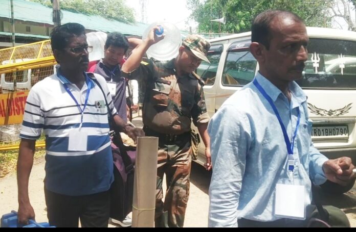 সামনে রেখে শনিবার সকাল থেকে খোয়াই জিলা পরিষদের মাঠে জরো হতে থাকে বিভিন্ন জায়গা থেকে আগত ভোট কর্মীরা। বিশেষ করে ৯ নং আসন আশারামবাড়ী ও হালালি কেন্দ্র এবং ১২ নং আসন রামচন্দ্র ঘাট এলাকার ভোট কর্মীরা ১২ই এপ্রিল ভোট গ্রহণের জন্য তাদের প্রয়োজনীয় ই ভি এম মেশিন সাহ বিভিন্ন জিনিসপত্র সংগ্রহ করে ভোটকেন্দ্রের উদ্দেশ্যে যেতে দেখা যায়। ৯ নং আসন আশারামবাড়ী ও হেলালি কেন্দ্র ভোট কেন্দ্র রয়েছে ৪৭ টি। এবং ১২ নং আসন রামচন্দ্রঘাট এলাকায় ভোট কেন্দ্র রয়েছে ৪১ টি।এই নির্বাচনকে সুষ্ঠুভাবে সম্পন্ন করার উদ্দেশ্যে ব্যাপক পরিমাণে নিরাপত্তার ব্যবস্থা করা হয়। পাশাপাশি ভোট কর্মীদের সাথে পর্যাপ্ত পরিমাণে নিরাপত্তা কর্মীদের নিয়োগ করা হয়। তার মধ্যে লক্ষ্য করা গেছে এবার কার এ ডি সির নির্বাচনে ভোট কর্মীদের সাথে রাজ্য পুলিশের মহিলা কনস্টেবলদের কেউ নিয়োগ করা হয়েছে । তাদের প্রত্যেককে আগ্নেয়াস্ত্র দিয়ে সুসজ্জিত করে ভোট কর্মীদের সাথে পাঠানো হচ্ছে। এই বিষয়ে দুই কেন্দ্রের রিটার্নিং অফিসার তথা খোয়াই মহাকুমা শাসক নির্মল কুমার জানান দুই কেন্দ্রের ভোট কর্মীরা শনিবার বিকেল তিনটার মধ্যে নির্দিষ্ট গন্তব্যস্থলে পৌঁছে গেছে। আগামী ১২ ই এপ্রিল সকাল সাতটা থেকে ভোট গ্রহণ পর্ব শুরু হবে। তার জন্য এই দুই কেন্দ্রের বিভিন্ন এলাকায় ভোটদানে যাতে কোন ধরনের বাধা-বিপত্তি না ঘটে তার জন্য কেন্দ্রীয় বাহিনীকে মোতায়েন করা হয়েছে ব্যাপক পরিমাণে। এছাড়াও সার্বিক পরিস্থিতির ওপর নজর রেখে চলেছেন তিনি।