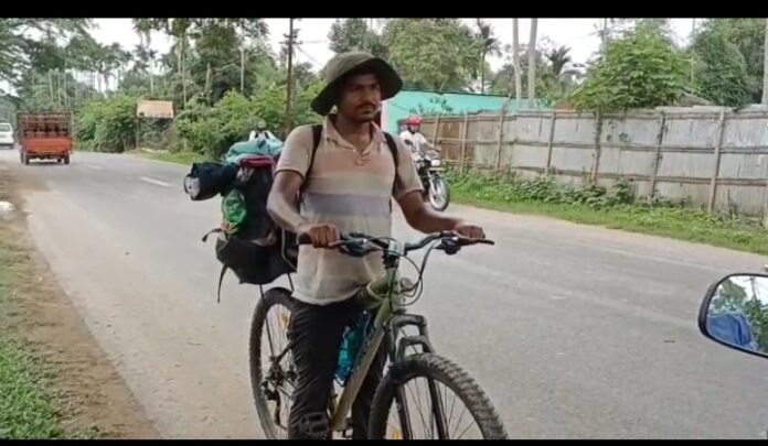 সমগ্র ভারতবর্ষকে জানা এবং ভারতবর্ষের প্রতিটি রাজ্যের মানুষ জনের আদব-কায়দা, রীতি-নীতি সহ একাধিক বিষয়কে জানার এবং অভিজ্ঞতা অর্জনের লক্ষ্যমাত্রা নিয়ে বিহার রাজ্যের এক উচ্চ শিক্ষিত তথা এমফিল পাস করা যুবক নিজের বাইসাইকেলের চেপে পাড়ি দিল ভারত ভ্রমণের উদ্দেশ্যে। জানা যায়,, দীর্ঘ ছয় মাস পূর্বে বিহার রাজ্যের এক উচ্চ-শিক্ষিত যুবক ধীরাজ কুমারের আচমকাই ইচ্ছে হয় ভারতবর্ষকে জানার এবং চেনার। আর সেই ইচ্ছাশক্তির কারণেই নিজের চাকরি ছেড়ে নিজের বাই সাইকেলে চেপে বেরিয়ে পড়ে ভারত ভ্রমণের উদ্দেশ্যে। ধীরাজ এখন পর্যন্ত মিজুরাম, সিকিম, পাঞ্জাব,মোট ১৩ টি রাজ্য নিজের বাইসাইকেলে চেপে ভ্রমণ করেছে, ত্রিপুরা তার ভ্রমণের ১৪ তম রাজ্য। শুক্রবার দুপুরে আগরতলা জাতীয় সড়ক ধরে তেলিয়ামুড়া হয় আগরতলা উদ্দেশ্যে যাত্রা করে উচ্চ শিক্ষিত যুবকর ধীরাজ কুমার। ধীরাজ কুমার জানান, মানুষকে চেনা, মানুষের সাথে কথা বলা, মানুষের আদব-কায়দা জানার চেষ্টা করা, মানুষের সামাজিক চলাফেরার ভঙ্গি সহ বিভিন্ন কিছু জানার তাগিদে ভারতকে জানার জন্য বাইসাইকেল করে ভ্রমণ করছে বিভিন্ন রাজ্যে। সেই যুবকটি আরো জানান, বর্তমানে সে এখনো পড়াশোনার সঙ্গে যুক্ত রয়েছে, এমফিল করেছে। চাকরিও করতো। সে চাকরি সুবাদে আন্তরাষ্ট্রীয় কোন এক সেমিনারে যোগ দেওয়ার আগে তার মাথায় প্রশ্ন জাগে। আগে ভারতকে জানতে হবে, জানতে হবে মানুষকে, কথা বলতে হবে মানুষের সাথে। কেমন করে মানুষ জীবন-জীবিকা নির্বাহ করে। তাই তিনি ভারতকে জানার জন্য বের হয়ে গেলেন পাঞ্জাব থেকে বাইসাইকেল করে এক ভ্রমণে। এখন পর্যন্ত তার কাছে ১৩ টি রাজ্যের মধ্যে প্রথম স্থানে রয়েছে উত্তর-পূর্ব ভারতের মিজোরাম রাজ্য। দ্বিতীয় স্থানে সিকিম এবং তৃতীয় স্থানে পাঞ্জাব। ত্রিপুরা রাজ্যের আগরতলা ভ্রমণ এরপর তিনি বাইসাইকেলের মাধ্যমে পৌঁছে যাবেন মেঘালয়ের শিলং-এ। প্রতিটি রাজ্যের থেকে সংগ্রহ করা তথ্য ডায়েরিতে লিপিবদ্ধ করে রাখেন। এদিকে এই যুবকের ভারত ভ্রমনে যে উদ্দেশ্য নিয়ে বেরিয়ে পড়েছে তা তেলিয়ামুড়া বাসীর পক্ষ থেকে সাধুবাদ জানিয়েছেন।