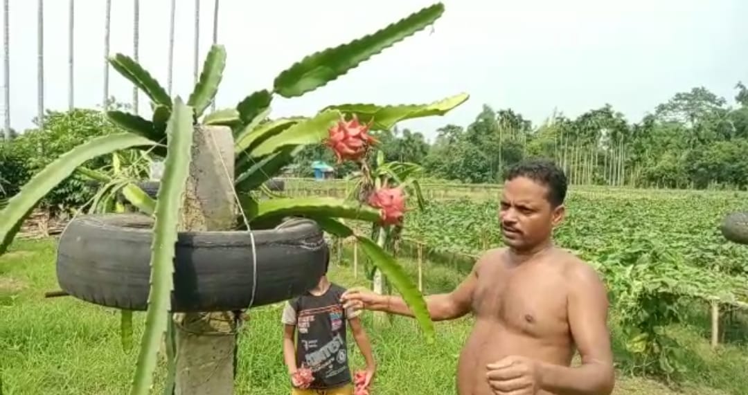 সরকারি চাকুরীর আশায় না থেকে নিজে উদ্যোগী হয়ে বিদেশি প্রজাতির মোরগ, হাঁস এবং ড্রাগন ফলের চাষাবাদ করে বর্তমানে স্বাবলম্বী এক ব্যাক্তি।এই ড্রাগন ফলের চাষাবাদ, বিদেশি প্রজাতির মোরগ এবং হাঁস প্রতিপালন করে নিজের সংসার ধর্ম যেমন প্রতিপালন করছেন তেমনি ভবিষ্যতের জন্য অর্থরাশীও সাশ্রয় করতে পারছেন। ওই ব্যাক্তিটি হলেন তেলিয়ামুড়া মহকুমার ঘীলাতলি এলাকার বাসিন্দা অজিত দাস। এই চাষাবাদ এবং নিজ উদ্যোগী হওয়ার প্রসঙ্গ টেনে চাষী অজিত দাস জানান,,, প্রায় দেড় বছর পূর্বে নিজ উদ্যোগে ড্রাগন ফলের চাষাবাদ শুরু করেছিলেন তিনি। সেইসঙ্গে বিদেশি প্রজাতির মোরগ এবং হাঁস ও পালন শুরু করেন তিনি। প্রায় দেড় বছর পেরিয়ে বর্তমানে তিনি যেমন লাভের মুখ দেখতে পাচ্ছেন তেমনি সংসার ও অনায়াসে প্রতি পালন করছেন। সরকারি চাকুরীর আশায় না থেকে তিনি নিজেই উদ্যোগী হয়ে এই পদক্ষেপ গ্রহণ করে বেশ সাফল্য পেয়েছেন বলে জানান অজিত দাস নামের ওই চাষী। বর্তমানে ওই চাষী রাজ্য প্রশাসনের কাছে আহ্বান জানান ড্রাগন ফল এবং বিদেশি প্রজাতির মোরগ, হাঁস চাষাবাদ ও প্রতি পালনের জন্য বেকার যুবক যুবতীদের যাতে উৎসাহিত করেন।