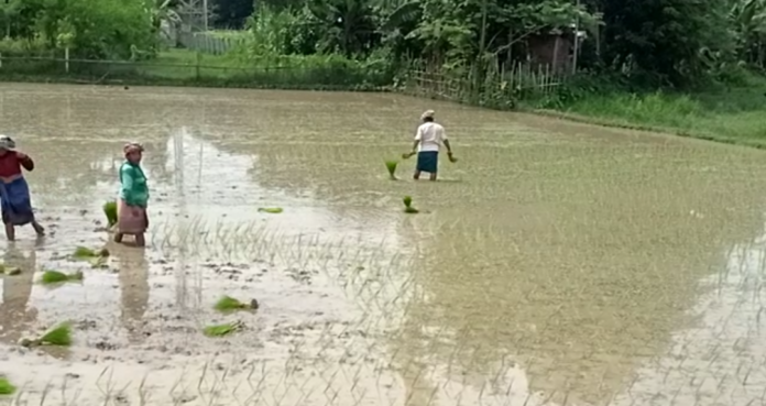 আংশিক বৃষ্টির ছোঁয়া পেয়ে কৃষকেরা স্ব-মেজাজে ধানের চারা রোপণের কাজে ব্যাস্ত হয়ে পড়ে। এমন বাস্তব চিত্র প্রত্যক্ষ করা গেল তেলিয়ামুড়া আর.ডি ব্লকের অধীনস্থ জগন্নাথবাড়ি গ্রাম পঞ্চায়েতের ত্রিশাবাড়ি এলাকা থেকে। শুক্রবার সকালে ওই এলাকায় গিয়ে প্রত্যক্ষ করা গেল ওই এলাকার স্থানীয় উপজাতি রমণীরা ধানি জমিতে রঞ্জিত ধানের চারা গাছ রোপনে ব্যাস্ত। আংশিক বৃষ্টির ছোঁয়া পেয়ে কৃষকদের মুখে হাসি ফুটলো। অগ্রাহায়নের শেষের দিকে ঘরে ধান তোলা যাবে এই আশা নিয়ে ত্রিশাবাড়ী এলাকার চাষী রাধারানী জমাতিয়া নিজ ধানি জমিতে প্রয়োজনীয় শ্রমিক নিয়ে চাষাবাদে ব্যাস্ত হয়ে পড়ে। কারণ বিগত কিছুদিনের আংশিক বৃষ্টির ছোঁয়ায় বেশ উর্বর হয়ে উঠে কৃষি জমি। আর এই সময়টিতেই কৃষকরা ধানের চারা রোপণ করছে ধান জমিতে।।
