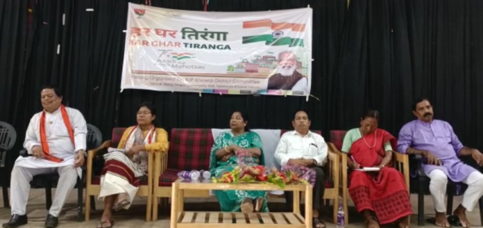 হর ঘর তিরাঙ্গা কর্মসূচিকে বাস্তবে রূপ দেওয়ার লক্ষ্যে বিজেপি খোয়াই জেলার উদ্যোগে এক সভা অনুষ্ঠিত হয় তেলিয়ামুড়া নেতাজি নগর স্থিত কমিউনিটি হল