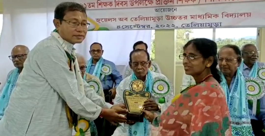 তেলিয়ামুড়া উচ্চতর মাধ্যমিক বিদ্যালয়ের ১৯৮২ সালের মাধ্যমিক ও ১৯৮৪ সালের উচ্চমাধ্যমিক প্রাক্তনীদের পক্ষ থেকে ৬১ তম শিক্ষক দিবস উপলক্ষে প্রাক্তন শিক্ষক-শিক্ষিকাদের সম্মাননা জ্ঞাপন অনুষ্ঠান অনুষ্ঠিত হলো রবিবার তেলিয়ামুড়া উত্তর বাজার স্থিত একটি বেসরকারি গেস্ট হাউসের কনফারেন্স হলে। এদিনের এই অনুষ্ঠানে তেলিয়ামুড়া উচ্চ-মাধ্যমিক বিদ্যালয়ের ১৯৮২ ও ১৯৮৪ সালে শিক্ষকতার সঙ্গে যুক্ত ১৫ জন শিক্ষক-শিক্ষিকাকে সম্মাননা জ্ঞাপন করা হয়। উল্লেখ থাকে,, তেলিয়ামুড়া উচ্চ মাধ্যমিক বিদ্যালয়ের ১৯৮২ এবং ১৯৮৪ সালের শিক্ষাবর্ষের মাধ্যমিক এবং উচ্চ মাধ্যমিক পরীক্ষার্থীরা বর্তমানে বিভিন্ন দিক দিয়ে সমাজের বুকে প্রতিষ্ঠিত হয়েছে। কেউ চিকিৎসক, কেউ বিধায়ক, আবার কেউ পুলিশের উচ্চ পদস্থ বড়ো কর্তা সহ অন্যান্য ক্ষেত্রে প্রতিষ্ঠিত। এবিষয় গুলো বিদ্যালয়ের এবং প্রাক্তন শিক্ষক শিক্ষিকাদের গর্ব করার মতো বিষয়। এদিনের এই অনুষ্ঠানে বিদ্যালয়ের প্রাক্তন শিক্ষক শিক্ষিকারা, প্রাক্তন ছাত্র-ছাত্রীদের উদ্দেশ্যে মূল্যবান এবং গঠনমূলক আলোচনা রাখেন।