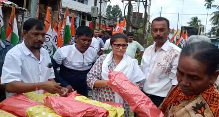 বাঙ্গালির শারদীয় উৎসবকে কেন্দ্র করে সমাজের পিছিয়ে পড়া শ্রেণীর মানুষের সঙ্গে শারদীয়ার আনন্দ ভাগ করে নেওয়ার উদ্দেশ্যে প্রদেশ তৃণমূল কংগ্রেসের উদ্যোগ। বৃহস্পতিবার প্রদেশ তৃণমূল কংগ্রেসের পক্ষ থেকে আসন্ন শারদীয়া উৎসবকে সামনে রেখে খোয়াই জেলা তৃণমূল কংগ্রেসের তেলিয়ামুড়া টেলিফোন এক্সচেঞ্জ চৌমুহনী স্থিত কার্যালয়ে এক বস্ত্র বিতরণ অনুষ্ঠান অনুষ্ঠিত হয়। এদিনের এই অনুষ্ঠানে প্রধান অতিথি হিসেবে উপস্থিত ছিলেন রাজ্যসভার সাংসদ তথা তৃণমূল নেত্রী সুস্মিতা দেব, উপস্থিত ছিলেন তৃণমূল নেত্রী পান্না দেব, তেলিয়ামুড়ার তৃণমূল নেতা সুধীর সরকার ও TMCP ছাত্র নেতা জয় দাস সহ অন্যান্যরা। এই বস্ত্র বিতরণ অনুষ্ঠানে মোট ১৫০ জন গরিব এবং সমাজের পিছিয়ে পরা মানুষদের হাতে বস্ত্র তুলে দেওয়া হয়। অন্যদিকে এই বস্ত্র বিতরণের অনুষ্ঠানের মধ্যেই বিজেপি দলের এক সক্রিয় কার্যকর্তা বিজেপি দলের হাত ছেড়ে ঘাসফুল শিবিরে যোগদান করে। নবাগত ওই কার্যকর্তাকে দলে বরণ করে নেন তৃণমূল নেত্রী সুস্মিতা দেব। তাছাড়া এই বস্ত্র বিতরণ অনুষ্ঠান’কে কেন্দ্র করে তেলিয়ামুড়া টেলিফোন এক্সচেঞ্জ স্থিত এলাকাটি করা নিরাপত্তা বেষ্টনীর ঘেরা টুপের মধ্য দিয়ে এদিনের এই বস্ত্র বিতরণ অনুষ্ঠান সম্পন্ন হয়।