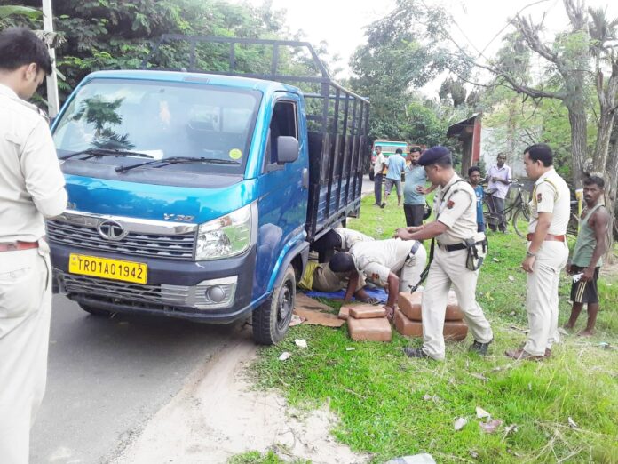 শনিবার দুপুরে খোয়াই পহর মুরা স্থিত বলাকা কমিউনিটি হলের সামনে পুলিশের নাকা তল্লাশী করার সময় একটি মিনি ট্রাক TRO1AQ1942 গাড়িটির নিচে গোপন কক্ষ থেকে 16 প্যাকেটে 69 কেজি গাঁজা উদ্ধার করে। যদিও টের পেয়ে গাড়ির চালক পালিয়ে যায়। পুলিশ জানায় এ গাড়িটি আগরতলা হয়ে খোয়াইয়ের উপর দিয়ে কমলপুরের উদ্দেশ্যে রওনা দিয়েছিল। তখন খোয়াই পহর মুরা বলাকা কমিউনিটি হলের সামনে নাকা তল্লাশীতে পুলিশ গাড়িটি কে দাঁড় করিয়ে কাগজপত্র দেখতে থাকেন তখন চালক বার বারই পুলিশকে প্রশ্ন করতে থাকে খালি গাড়ি কেন তল্লাশি করছেন চালকের এহেন কোথায় পুলিশের সন্দেহ হয় তখন গাড়িটির নিচের দিকে তল্লাশি করতেই গোপন কক্ষের সন্ধান পান পুলিশ তখন তল্লাশি চালালে গাজার প্যাকেট গুলি দেখতে পান পুলিশ। পুলিশের তল্লাশি করতে দেখে সেই সময় পালিয়ে যায় গাড়ির চালক। এই তল্লাশিতে নেতৃত্ব ছিলেন খোয়াই সুভাষ পার্ক পুলিশ ফাঁড়ির ওসি দেবাশীষ সাহা সহ অন্যান্য পুলিশকর্মীরা। এই গাজা উদ্ধারের ঘটনার খবর পেয়ে ঘটনাস্থলে পুলিশ আধিকারিক রাজিব সূত্রধর ও খোয়াই থানার ওসি রাজকুমার জমাতিয়া গিয়ে উপস্থিত হন এবং গাঁজাসহ গাড়িটিকে খোয়াই থানায় নিয়ে আসেন এই বিষয়ে পুলিশ একটি এন ডি পি এস মামলা গ্রহণ করেন।