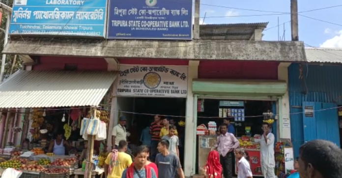 ব্যাঙ্ক গ্রাহকের অর্থ আত্মসাৎ করায় ব্যাঙ্কের গ্রাহকরা দৌড়ঝাঁপ শুরু করে দিয়েছে। বিক্ষুব্ধ গ্ৰাহকরা ব্যাঙ্কের মূল ফটকে তালা ঝুলিয়ে বিক্ষোভ প্রদর্শন করতে থাকে। ঘটনা তেলিয়ামুড়া থানাধীন তুইসিন্দ্রাই বাজার স্থিত ত্রিপুরা কো-অপারেটিভ ব্যাঙ্ক লিমিটেডে সোমবার, পরিস্থিতি নিয়ন্ত্রণে আনতে ঘটনাস্থলে তেলিয়ামুড়া থানার পুলিশ।
