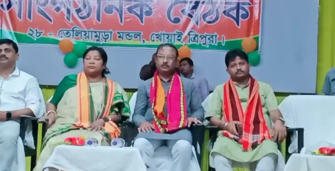 ২০২৩ বিধানসভা নির্বাচন’কে পাখির চোখ করে ময়দানের তৎপর শাসক দল বিজেপি। ২০২৩ বিধানসভা নির্বাচনে বিনা যুদ্ধে বিন্দুমাত্র জমি ছাড়তে নারাজ তারা। আর সে কারণেই ভোটের দামামা বেজে উঠতেই শাসক শিবির বিজেপি’র ত্রিপুরা রাজ্য সভাপতি রাজীব ভট্টাচার্য বিভিন্ন জেলায় জেলায় ঘুরে সাংগঠনিক শক্তিকে বৃদ্ধি করে বর্তমানে মন্ডল স্তরের শক্তিকে বৃদ্ধি করার জন্য প্রয়াস হাতে নিয়েছেন তিনি। এরই অঙ্গ হিসেবে এবং ২০২৩ বিধানসভা নির্বাচনকে পাখির চোখ করে ২৮ তেলিয়ামুড়া বিধানসভা কেন্দ্রের তেলিয়ামুড়া চিত্রাঙ্গদা কলা কেন্দ্র তথা তেলিয়ামুড়া টাউন হলে বিজেপি রাজ্য সভাপতি রাজীব ভট্টাচার্যের পৌরহিত্বে এক সাংগঠনিক বৈঠক অনুষ্ঠিত হয় শনিবার বিকেলে। এদিনের এই বৈঠকে বিজেপি রাজ্য সভাপতি রাজীব ভট্টাচার্য ছাড়াও উপস্থিত ছিলেন বিজেপি খোয়াই জেলা সভাপতি পিনাকি দাস চৌধুরী, তেলিয়ামুড়া বিধানসভা কেন্দ্রের বিধায়িকা কল্যাণী রায়, তেলিয়ামুড়া মন্ডল সভাপতি রঞ্জিত সূত্রধর সহ বিজেপি দলের মন্ডল থেকে বুথ স্থরের সমস্ত কার্যকর্তারা।