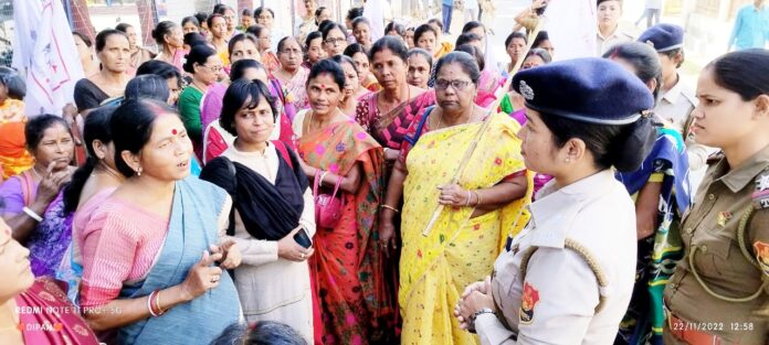 ক্রমবর্ধমান নারী নির্য্যাতনের বিরুদ্ধে ভারত গণতান্ত্রিক নারী সমিতির বিক্ষোভ খোয়াই মহিলা থানার সামনে
