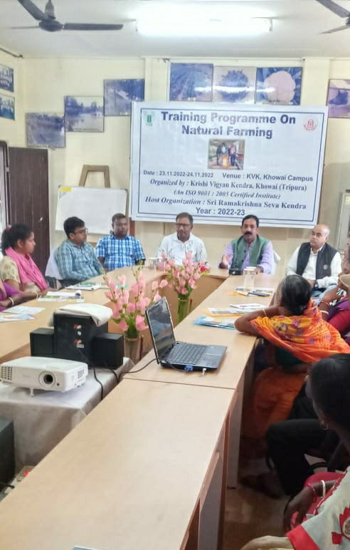 বুধবার দুপুরে খোয়াই চেবরি স্থিত দিব্যোদয় কৃষি বিজ্ঞান কেন্দ্রের উদ্যোগে অনুষ্ঠিত হলো প্রাকৃতিক চাষের উপর এলাকার কৃষকদের নিয়ে এক প্রশিক্ষণ শিবির। এই শিবিরে গনকি, রামচন্দ্র ঘাট, রংখল পাড়া, নকশিরাই পড়া সহ আরো বিভিন্ন এলাকার ৪০ জন কৃষক এই প্রশিক্ষণ শিবিরে উপস্থিত ছিলেন। এই শিবিরে স্বাগত ভাষণ রাখতে গিয়ে দিব্যোদয় কৃষি বিজ্ঞান কেন্দ্রের বরিষ্ঠ বিজ্ঞানী ও প্রধান ডঃ মনোজ সিং শাচান প্রাকৃতিক ক্ষেত কি সে সম্পর্কে বিস্তৃত আলোচনা করেন। এদিন অনুষ্ঠানের প্রধান অতিথি হিসেবে উপস্থিত ছিলেন খোয়াই জেলা পরিষদের সহ-সভাপতি হরিশংকর পাল। তিনি বলেন ভারতের প্রধানমন্ত্রী নরেন্দ্র মোদি বর্তমান সময়ে জৈব সার ব্যবহারের দিকে বিশেষভাবে জোর দিয়েছেন। তিনি এও বলেন প্রকৃতি এই বিশ্ব সৃষ্টি করেছেন এই প্রকৃতিকে ব্যবহার করে আমরা বিভিন্ন জৈব সার তৈরি করতে পারি। বিশেষ করে জনজাতি কৃষক ভাই-বোনেরা জুম চাষ করে সবজি, মিষ্টি কুমোর, খারকন, আলু ইত্যাদি চাষাবাদ করেন যেগুলির চেহিদা বাজারে প্রচুর রয়েছে। তিনি এও বলেন প্রত্যেক বাড়িতে যদি আমরা নিম ও তুলসী গাছ লাগাই তার থেকে যে হাওয়া লাগে তা শরীরের পক্ষে যথেষ্ট সুস্বাস্থ্য পদ। কৃষি বিজ্ঞান কেন্দ্রের এ ধরনের অনুষ্ঠানের আয়োজন করার জন্য তিনি দিব্যোদয় কৃষি বিজ্ঞান কেন্দ্রর প্রশংসা করেন। শেষে কৃষকদের মধ্যে বিভিন্ন সবজির বীজ, চারা কৃষকদের হাতে তুলে দেন। অনুষ্ঠানে ধন্যবাদ সুচক বক্তব্য রাখেন পশু পালন বিশেষজ্ঞ ডঃ নুরুল ইসলাম। এদিন খোয়াই রামচন্দ্র ঘাট নামাপাড়া গ্রামে ধানের মধ্যে ফসফরাস পরিচর্যার উপর ক্ষেত্র দিবস অনুষ্ঠিত হয়। এই ক্ষেত্র দিবসে উপস্থিত ছিলেন মৃত্তিকা বিশেষজ্ঞ দীপঙ্কর দে, কৃষ সম্প্রসারণ বিভাগের বিশেষজ্ঞ ডক্টর রাজিব দাস, প্রবীণ ফার্মাস ক্লাবের সভাপতি কৃষ্ণকান্ত দাস ও সম্পাদক নিরঞ্জন দেবনাথ। এই ক্ষেত্রে দিবসের ত্রিপুরার মাটিতে ফসফরাস স্বল্পতার জন্য বিভিন্ন সমস্যা সম্মুখীন হতে হয় কৃষকদেরকে তাছাড়া রক ফসফেট ব্যবহার করার ফলে এবং ধানের চারা গুলোকে জীবামৃত সারের মধ্যে ডুবিয়ে রেখে লাগানোর ফলে উৎপাদন বৃদ্ধি পেয়েছে। আমরা মাটিতে এস এস পি থেকে রক ফসফেট বেশি কার্যকর এই আলোচনাগুলি উঠে এসেছে ক্ষেত্রে দিবসের মাধ্যমে ৬২ জন কৃষকদের নিয়ে।