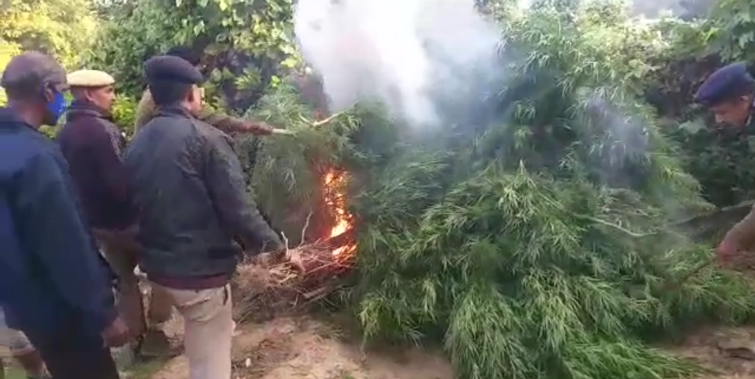 পুলিশ গাঁজা বিরোধী অভিযানে নেমে ১০০ গাছ কেটে বাহবা পেতে মরিয়া।